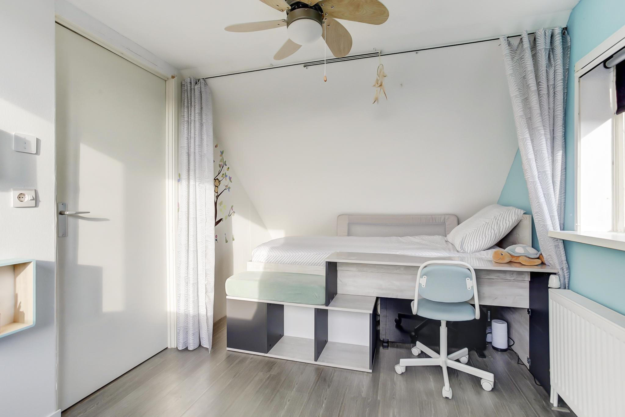 Riante overloop met dakkapel, tv/zithoek en kastruimte. Op de verdieping zijn 3 ruime slaapkamers aanwezig voorzien van een dakkapel. De gehele achterzijde is over de gehele lengte uitgerust met een kunststofdakkapel in 2020. De dakkapel aan de voorzijde is aangebracht in 2024.