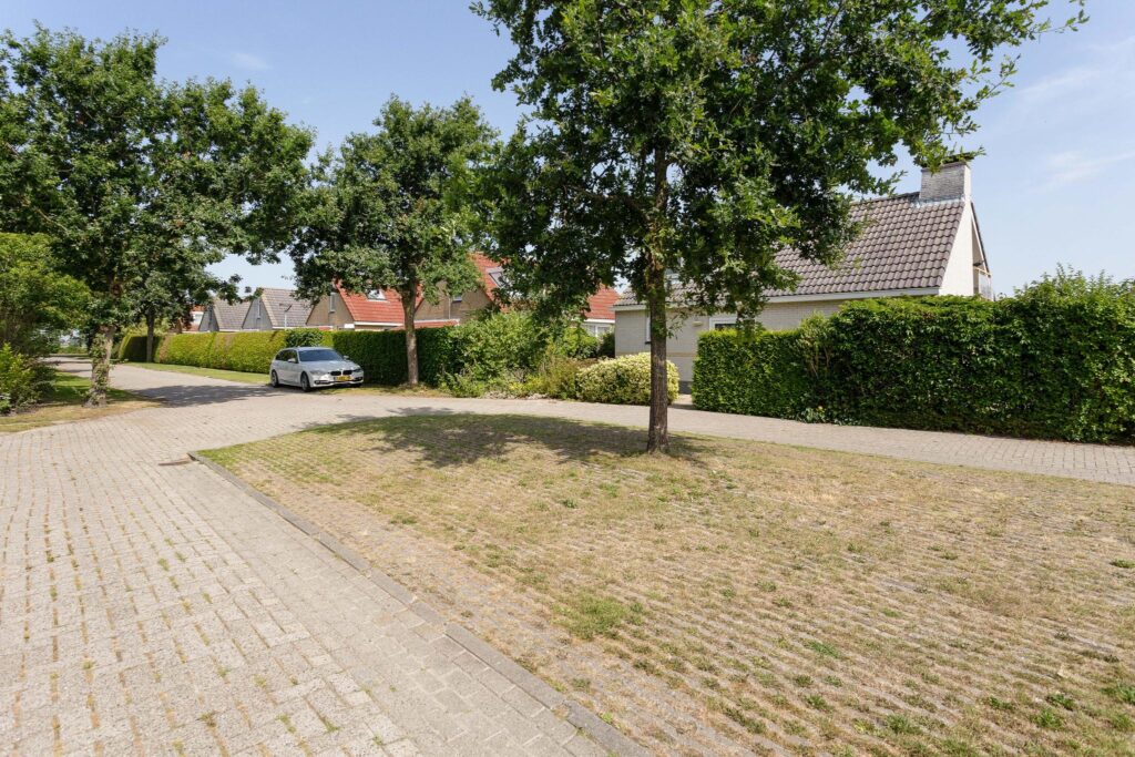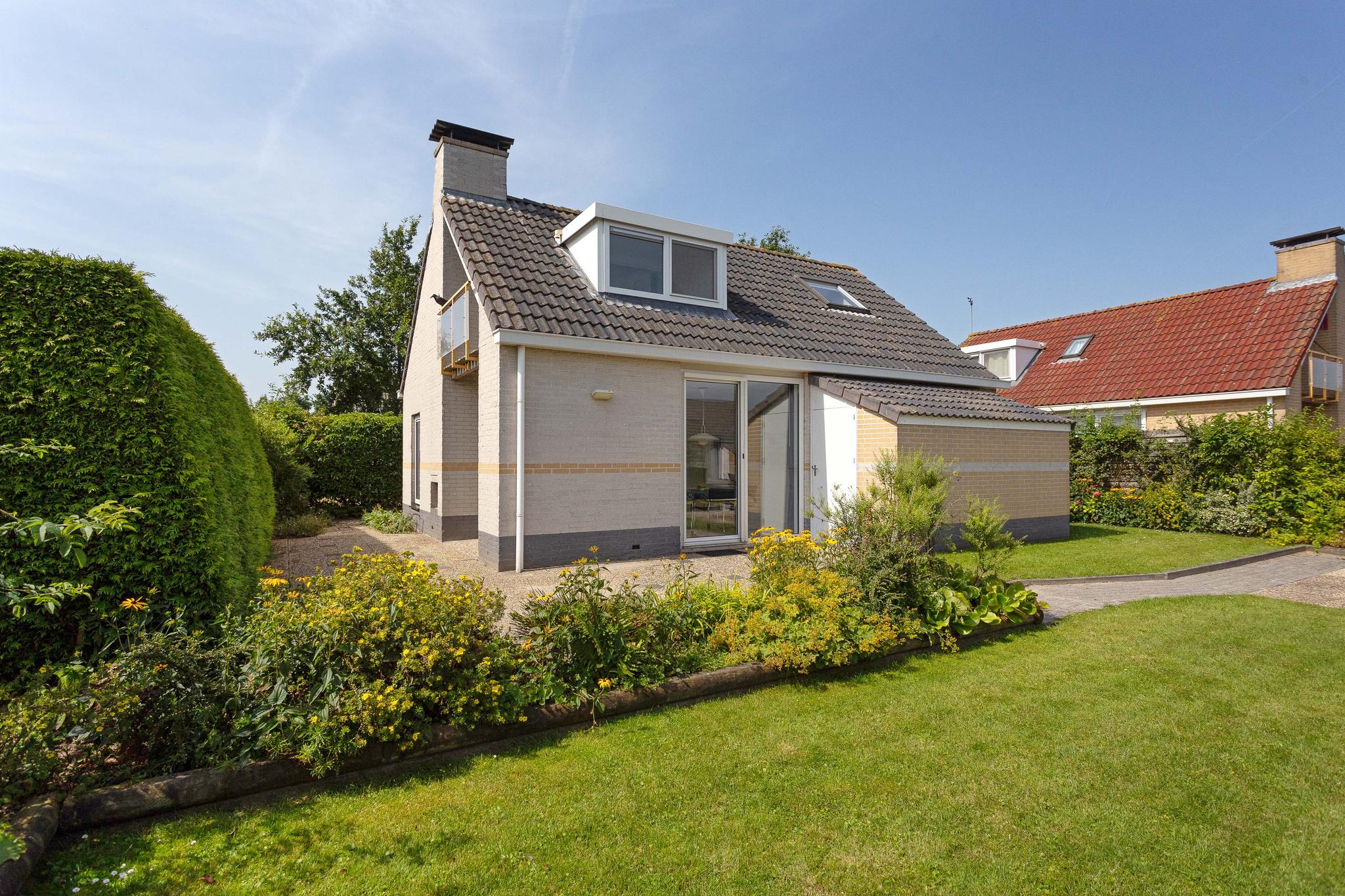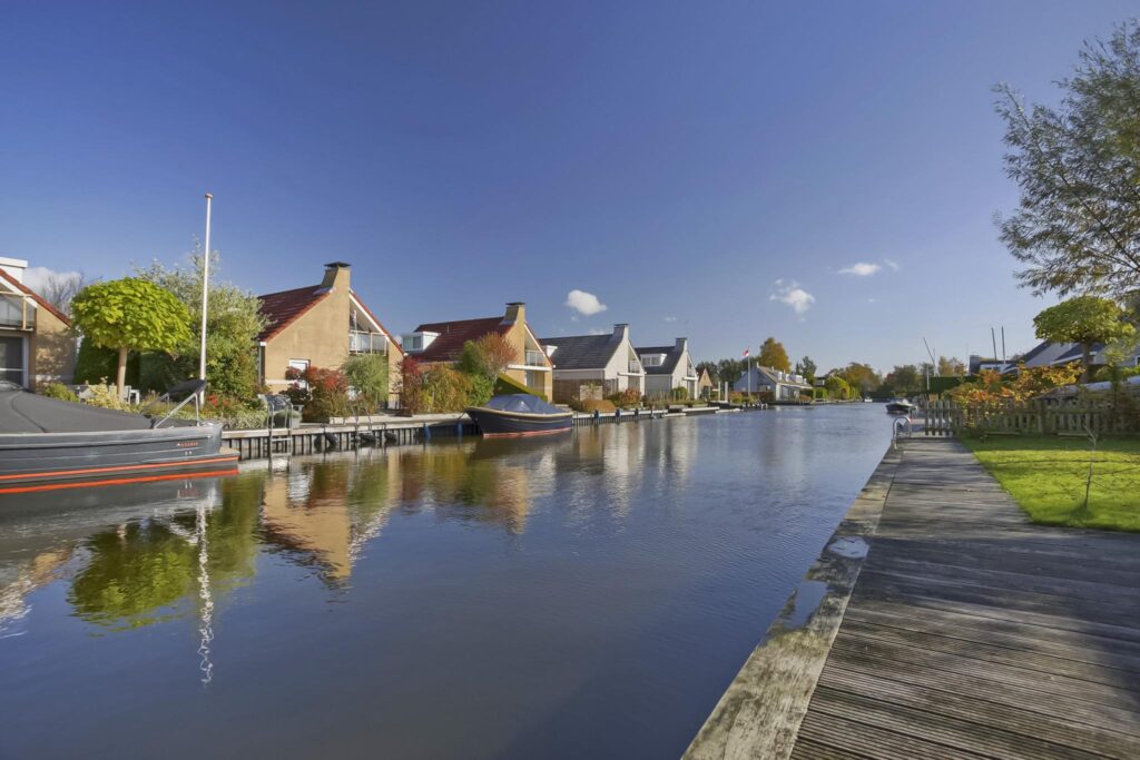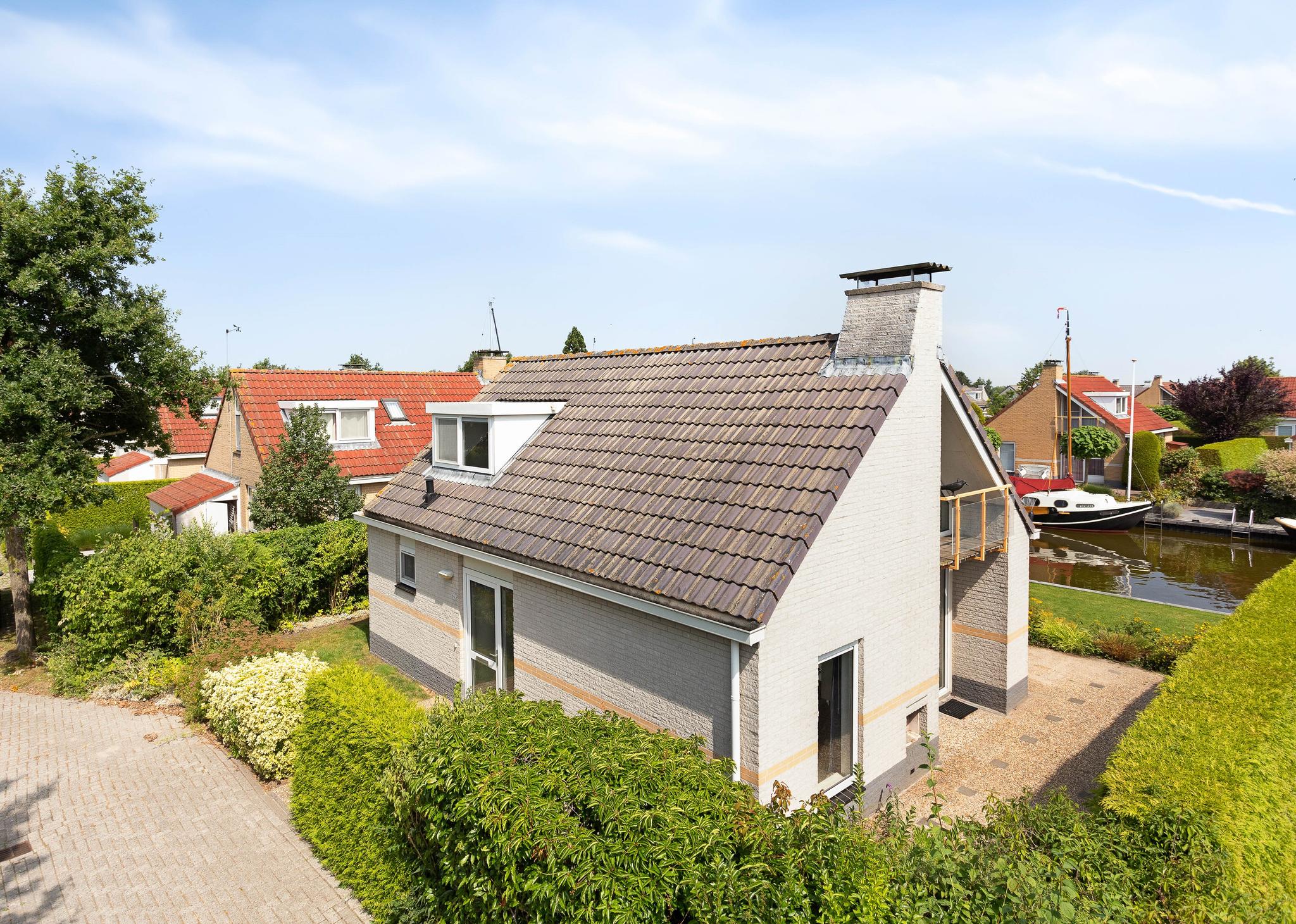 Zonnige tuin met veel privacy. Aan de waterzijde is een bestraat terras. Een openhaard aan de zijgevel. De kavel heeft aan weerszijden fraaie groene hagen en is verder ingericht met gazon en borders. Langs het water 15 meter aanlegplek voor boten. Steiger en oprit voor een boottrailer (staan niet op de foto). Vanuit de tuin is er prachtig uitzicht over breed vaarwater!