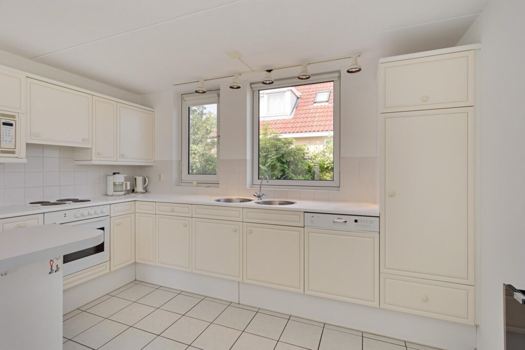 Voorentree, hal, meterkast, complete badkamer; waaronder een wastafelmeubel, whirlpool, douche en een wasmachine. Prachtige lichte living uitgerust met een u-vormige keuken inclusief diverse moderne inbouwapparatuur, waaronder: vaatwasser, koelkast, oven en magnetron, keramische kookplaat, afzuigkap. De living beschikt over een openhaard en twee schuifpuien naar het terras.