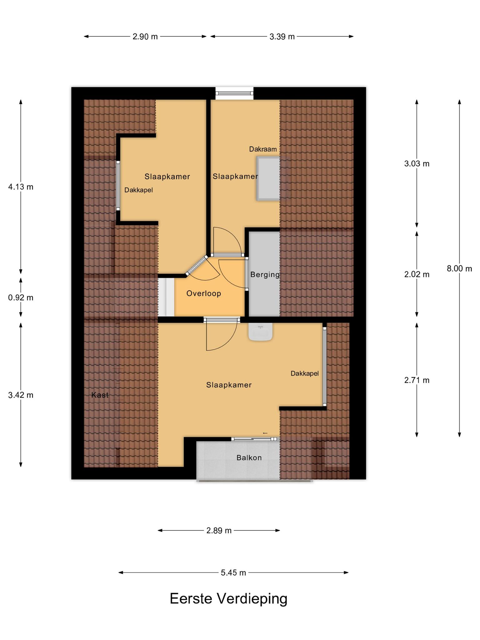 Overloop, inloopkast met garderobe, drie ruime slaapkamers, waarvan één extra ruime ouderslaapkamer. Er zijn twee dakkapellen aan zowel de voor- als achterzijde. Aan de zijkant van de ouderslaapkamer een balkon.