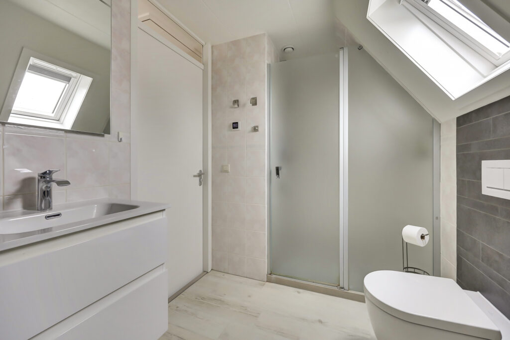 Overloop met lichtinval, 3 slaapkamers waarvan een ruime slaapkamer met dakkapel, een complete badkamer voorzien van vloerverwarming (electrisch), een dubbele wastafel, doucheruimte, ligbad en een tweede toilet.