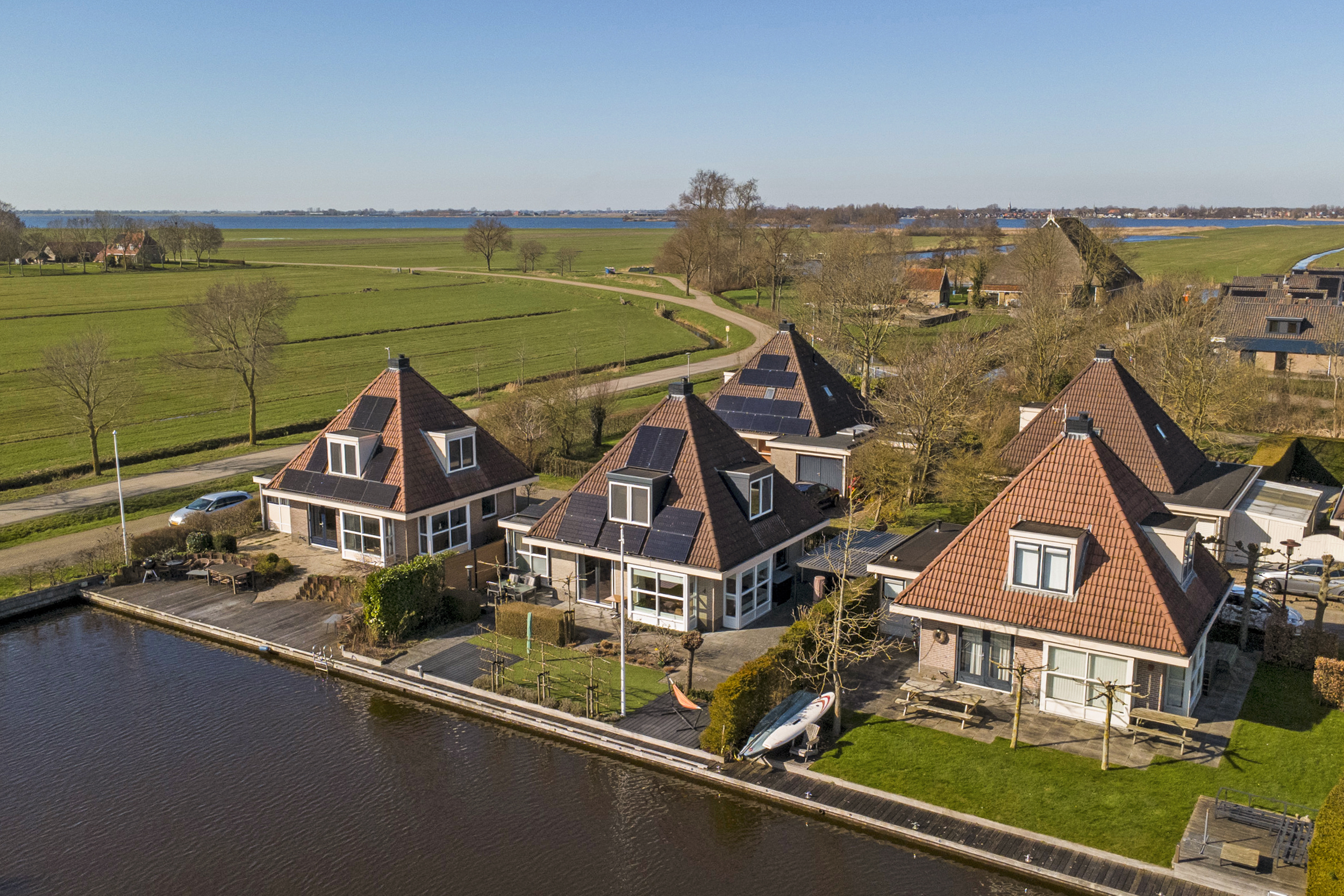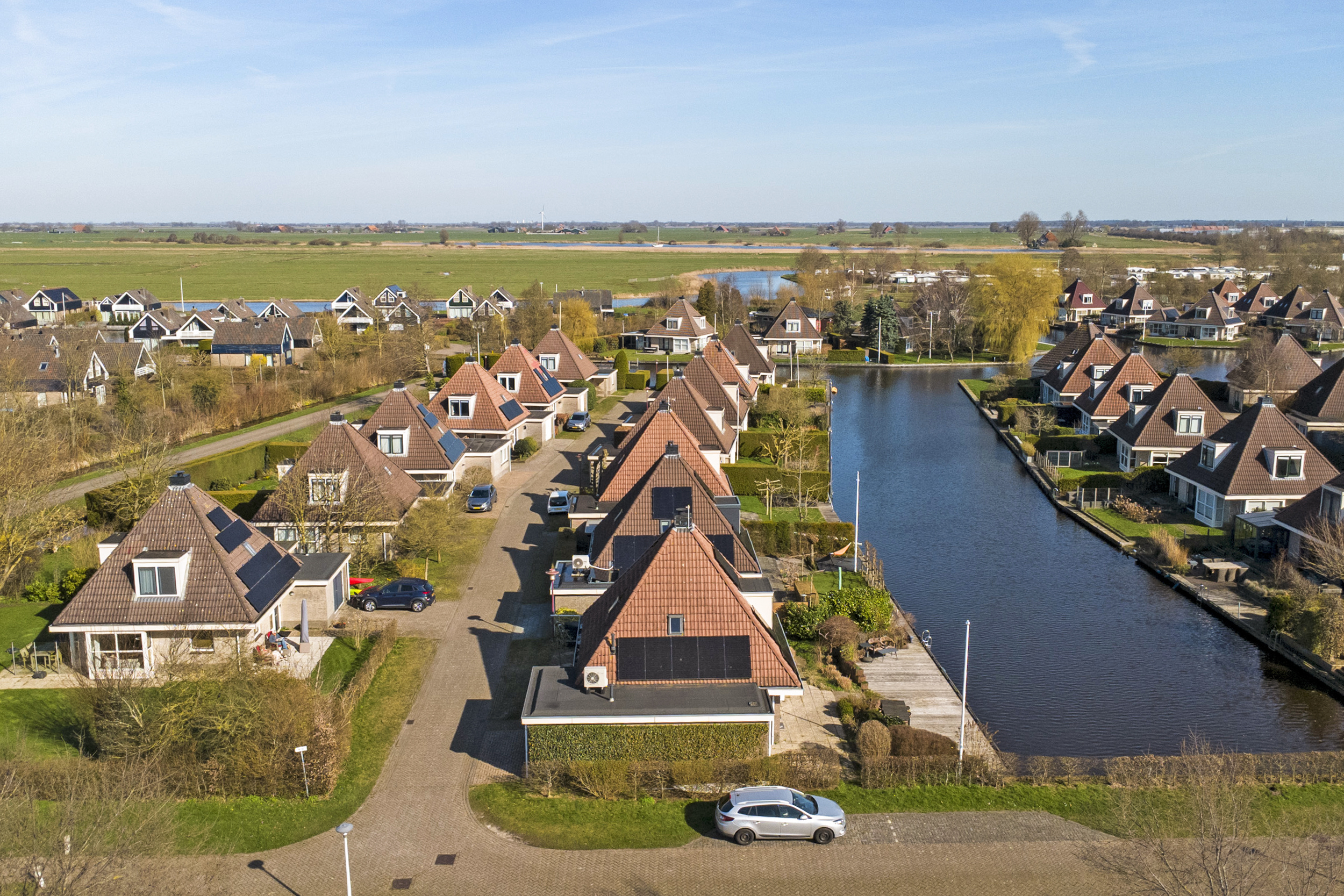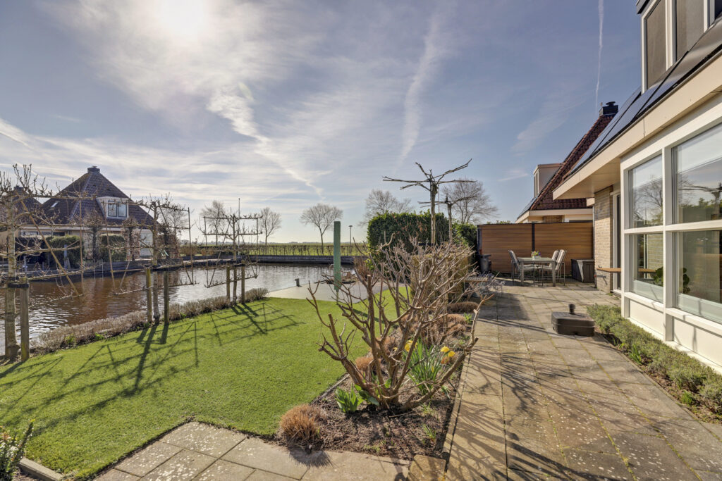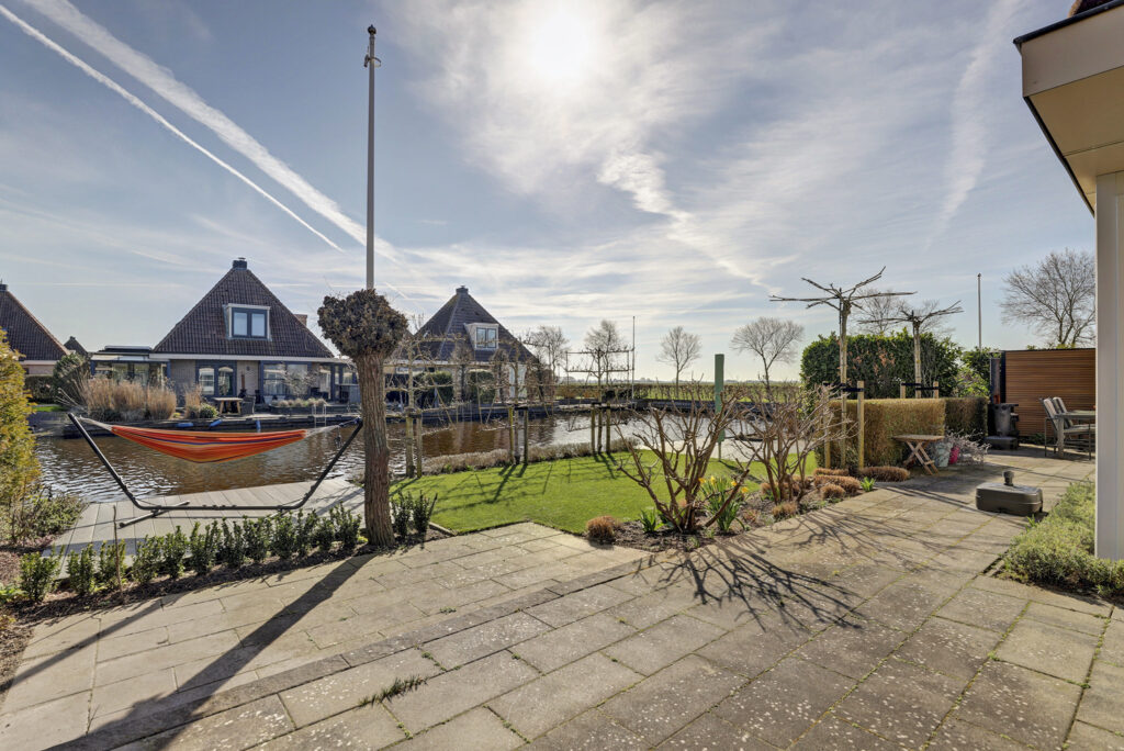 Vanuit de woning en vanaf de zonneterrassen kun je volop genieten van een prachtig weids uitzicht over de landerijen. De eigen aanlegsteiger heeft maar liefst een lengte van 15 meter. Er zijn goede vaarverbindingen naar alle Friese meren, staande mastroute, waaronder het nabijgelegen Slotermeer, Heegermeer/Fluessen en het IJsselmeer.