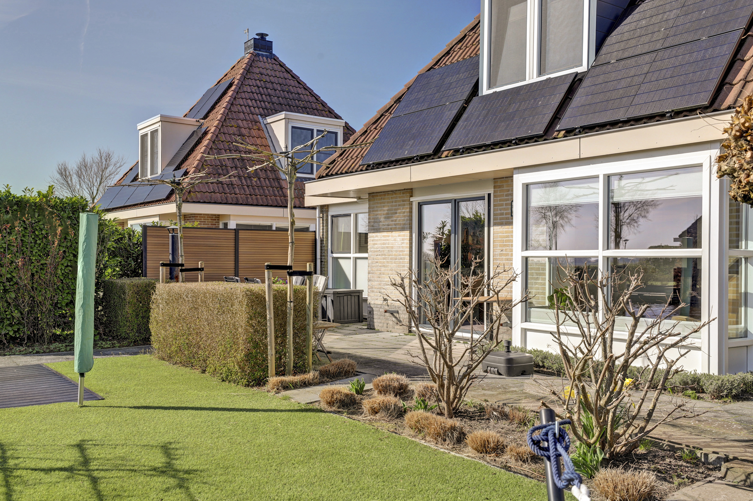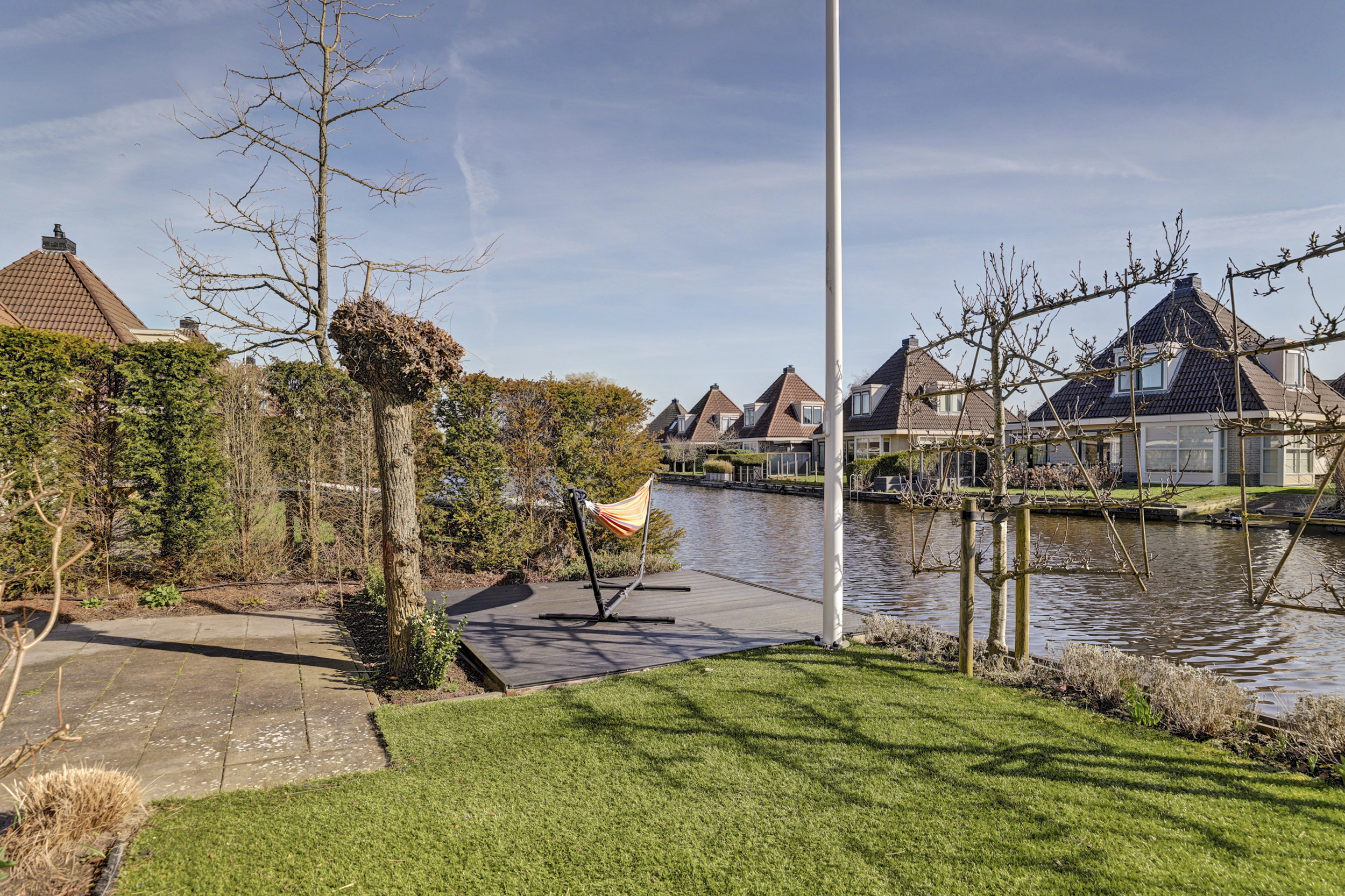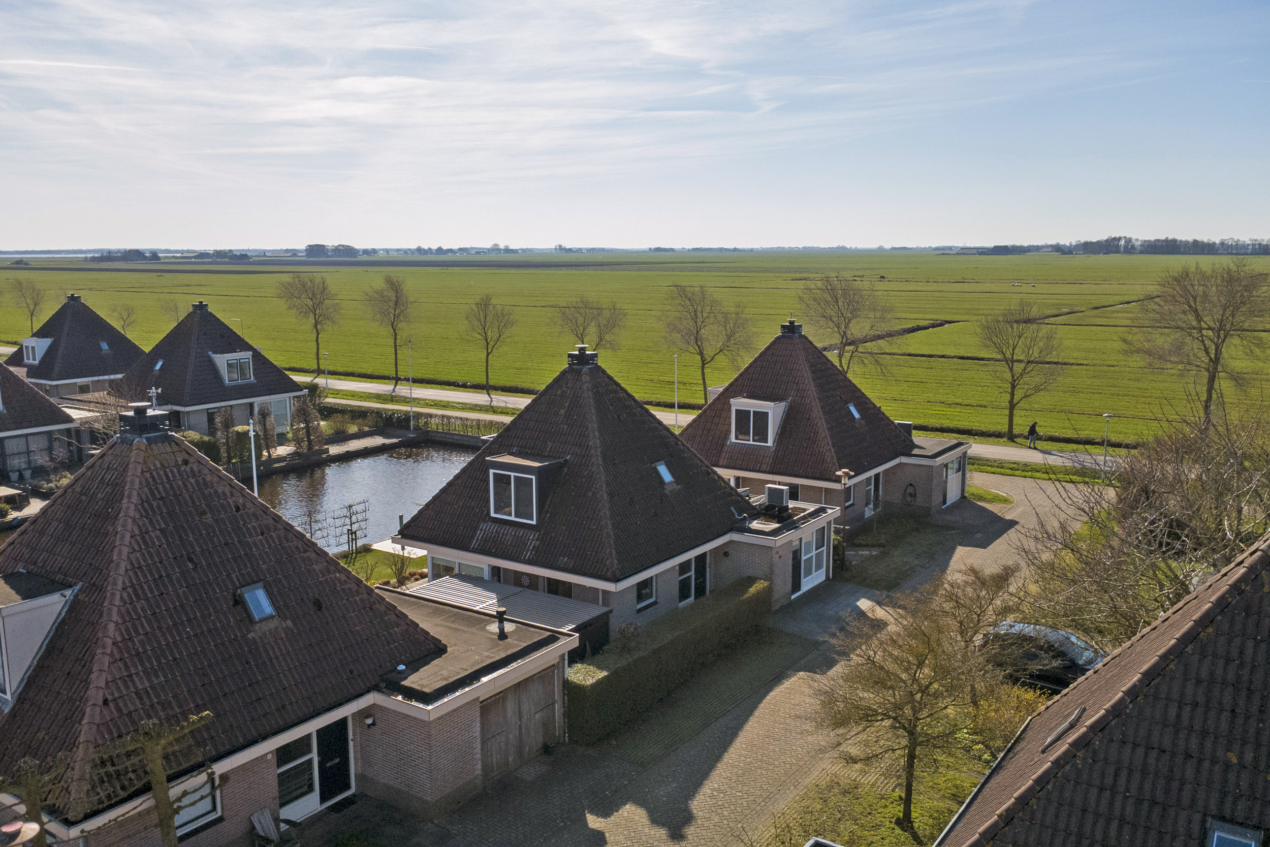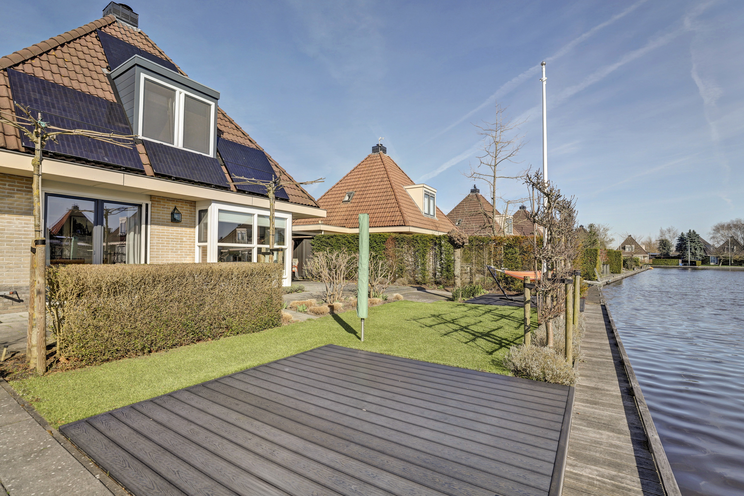 Vanuit de woning en vanaf de zonneterrassen kun je volop genieten van een prachtig weids uitzicht over de landerijen. De eigen aanlegsteiger heeft maar liefst een lengte van 15 meter. Er zijn goede vaarverbindingen naar alle Friese meren, staande mastroute, waaronder het nabijgelegen Slotermeer, Heegermeer/Fluessen en het IJsselmeer.