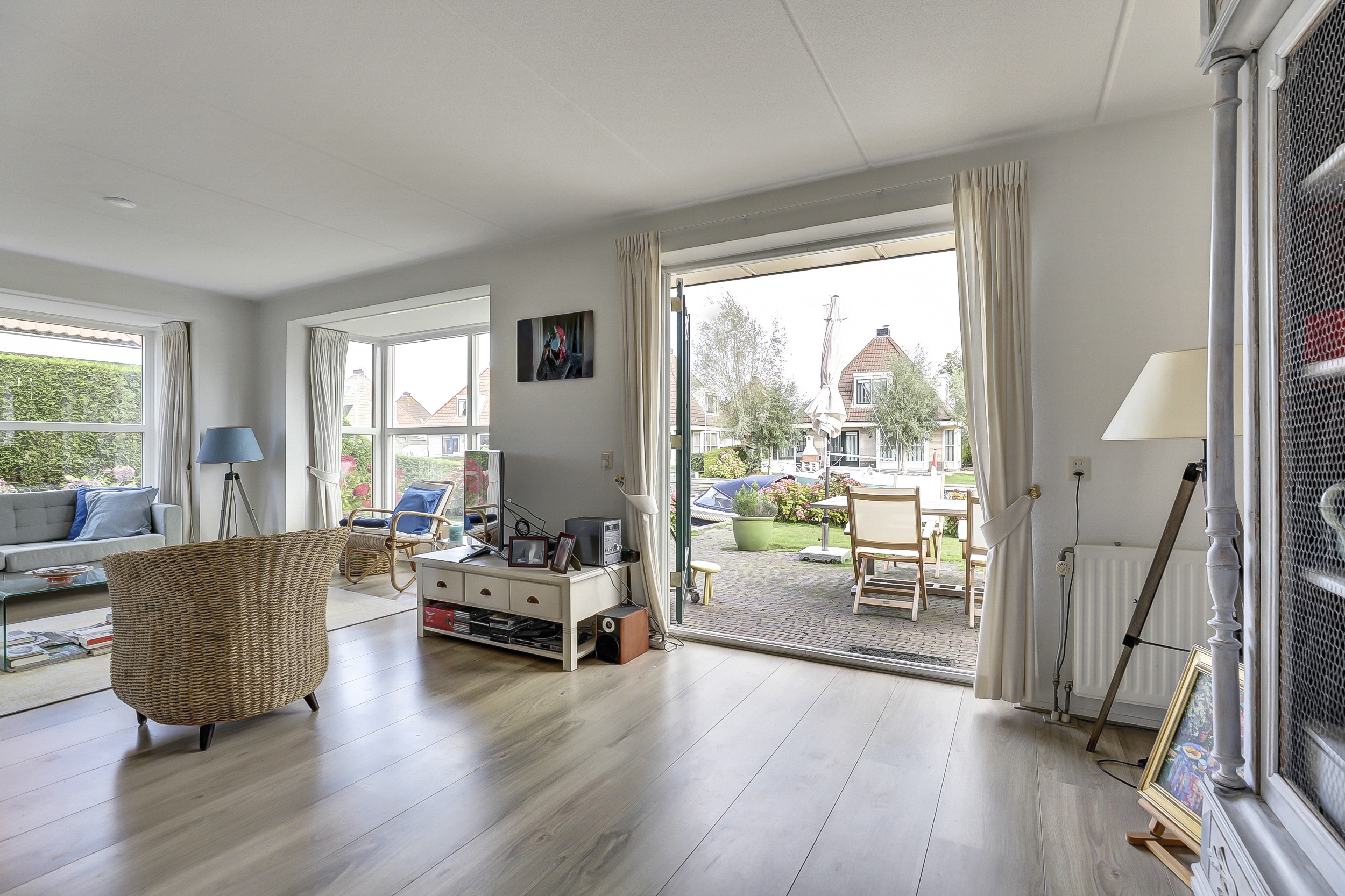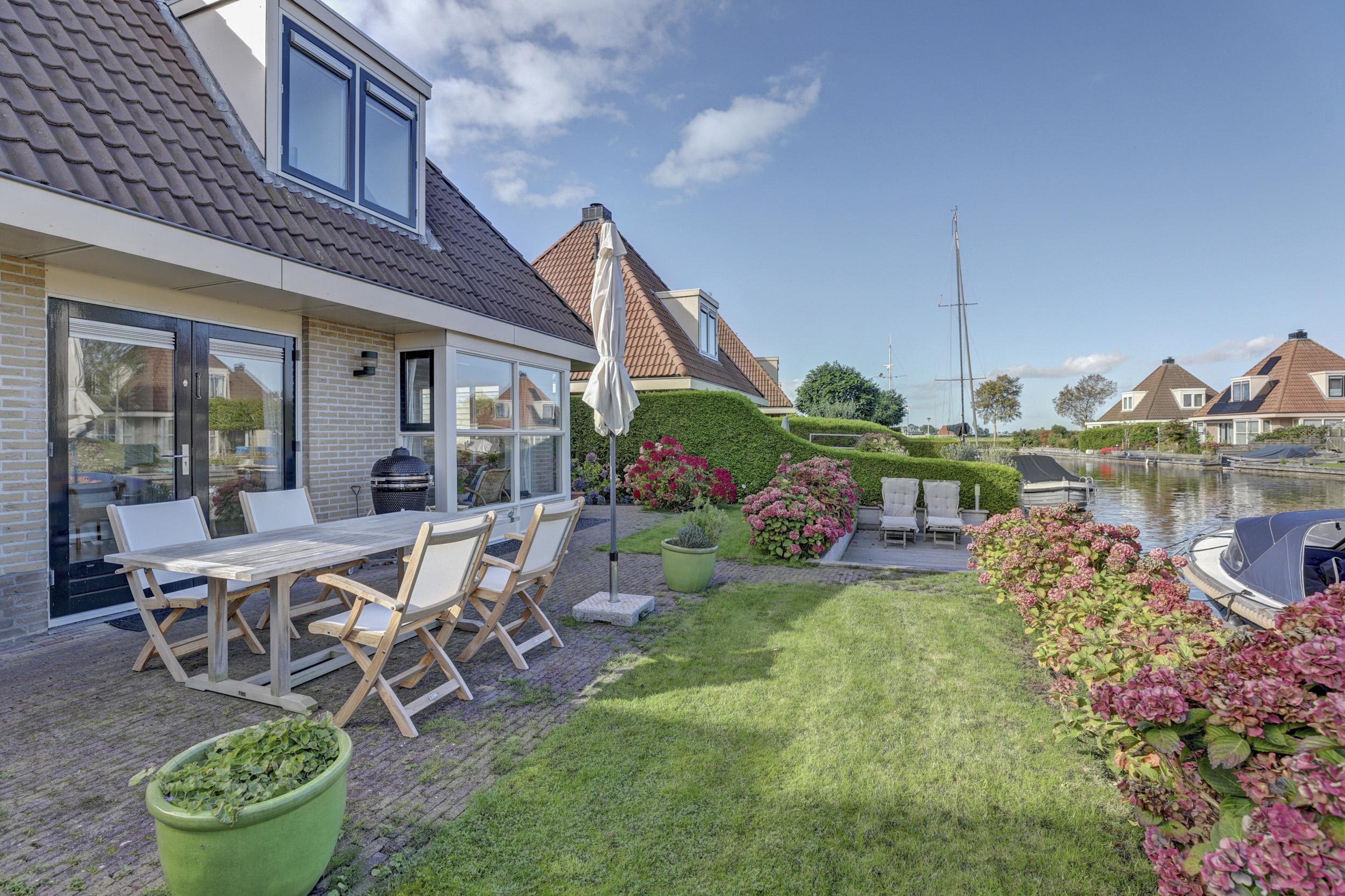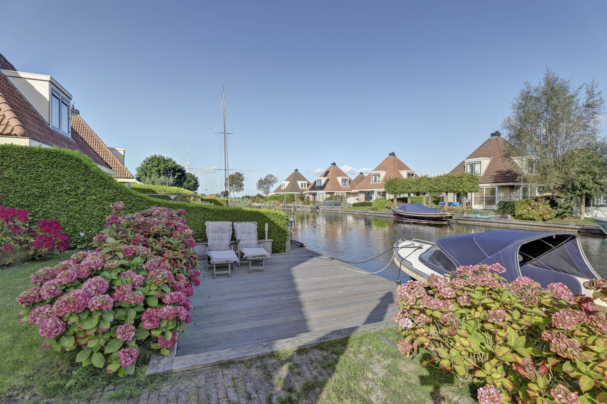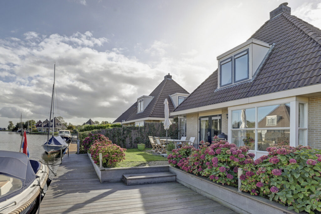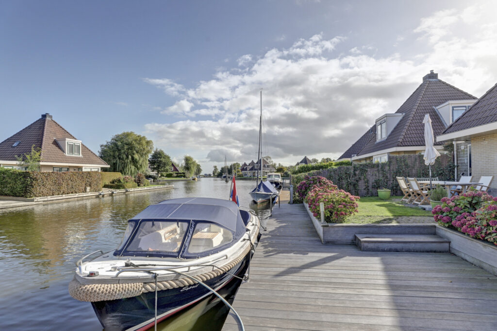Deze watervilla is prachtig gelegen, uitstekend onderhouden en ingericht met een royaal terras. Er is een eigen aanleg steiger van maar liefst 13 meter lengte. De gehele walbeschoeiing is in 2015 vernieuwd. Vanaf het terras kun je volop genieten van het weidse uitzicht over een kruispunt van vaarwegen en de doorgaande vaarroute de EE richting het Heegermeer/Fluessen en het Slotermeer. Eigen aanlegsteiger van 13m. lengte. Vanuit hier zijn alle Friese meren en het IJsselmeer middels staande mastroute goed bereikbaar.