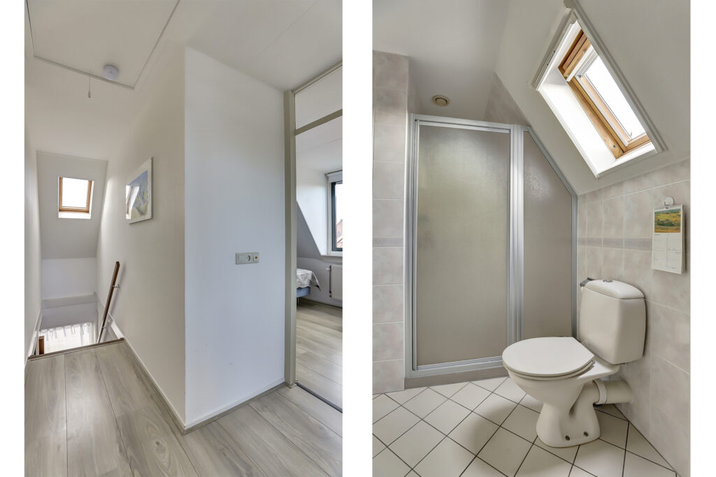 Overloop met lichtinval, 3 slaapkamers waarvan een ruime slaapkamer met dakkapel, een complete badkamer voorzien van een dubbele wastafel, doucheruimte, ligbad met jacuzzi en een tweede toilet.