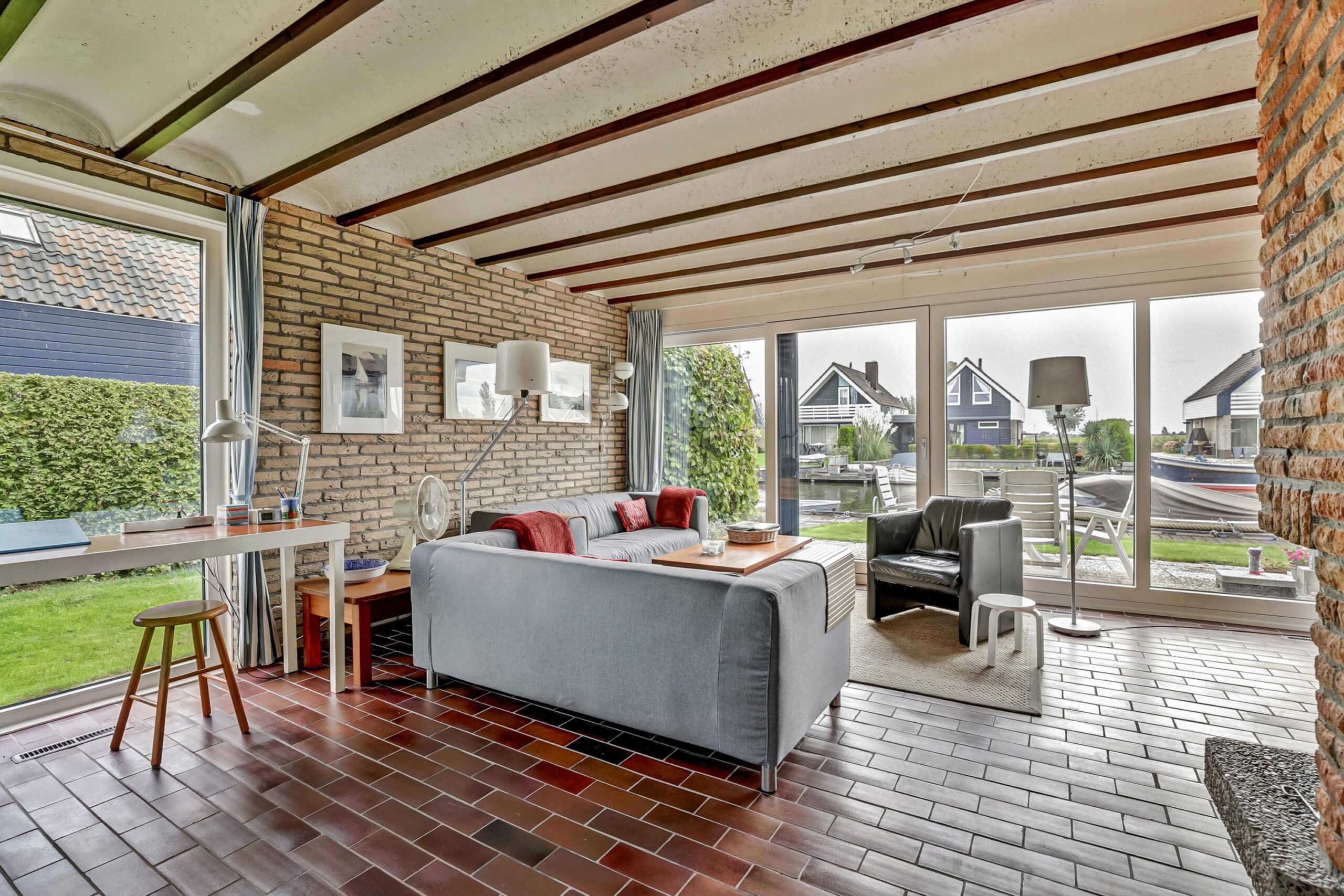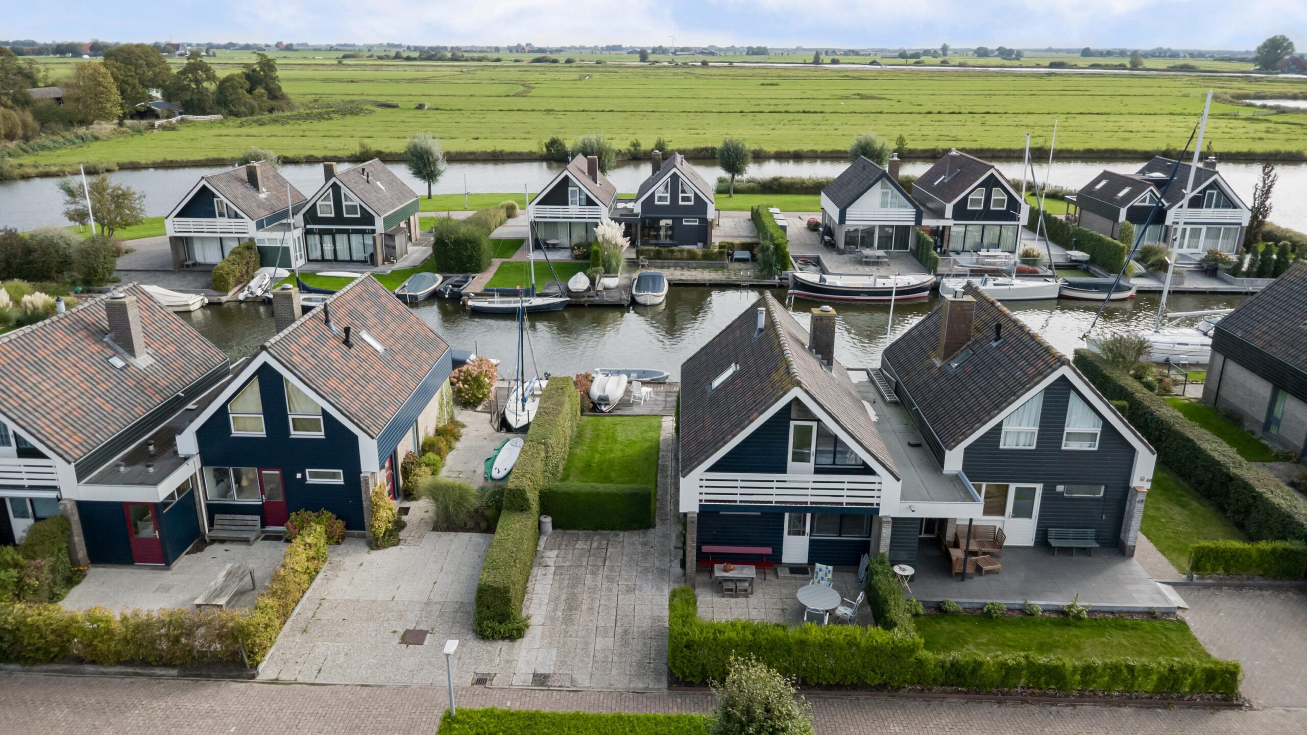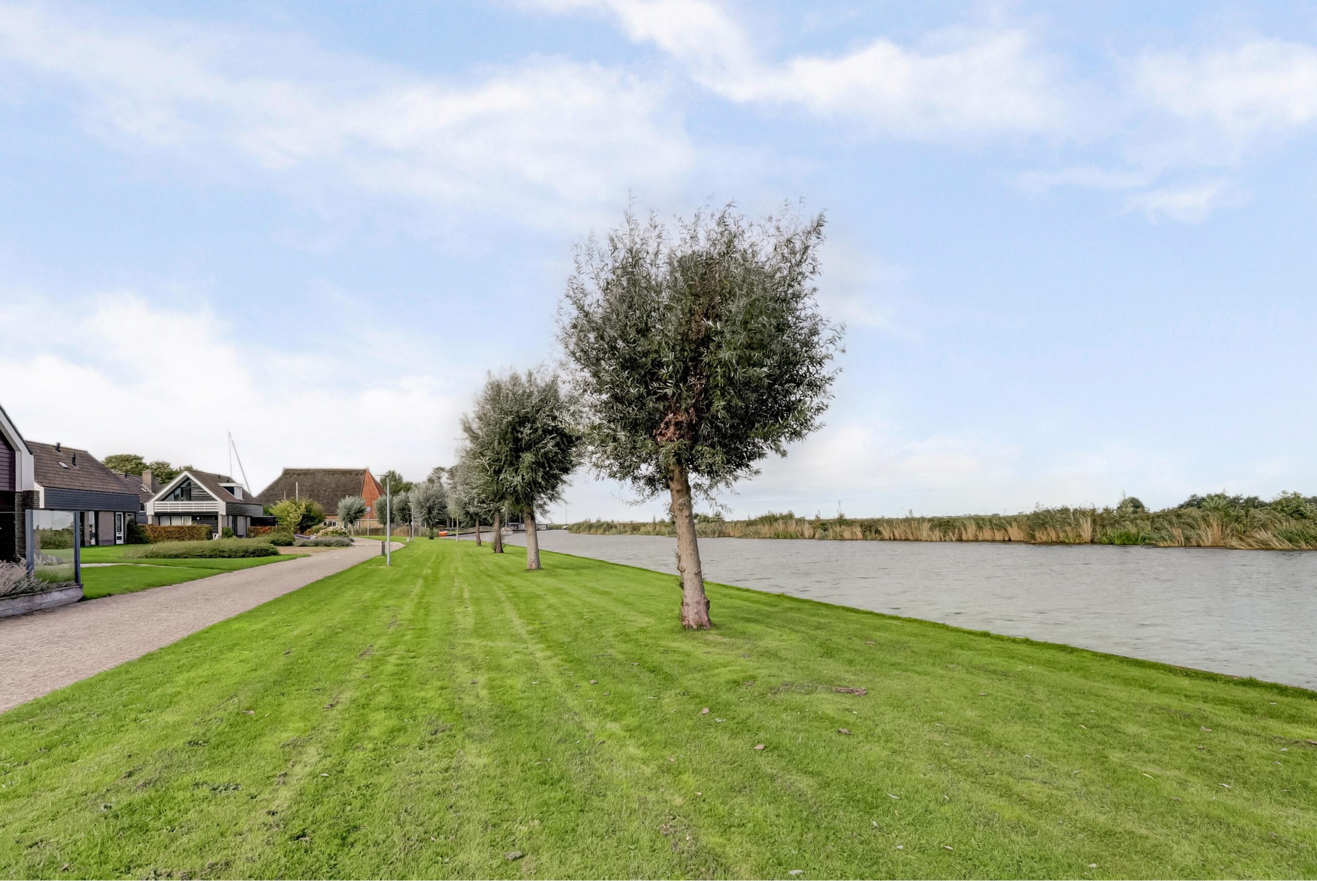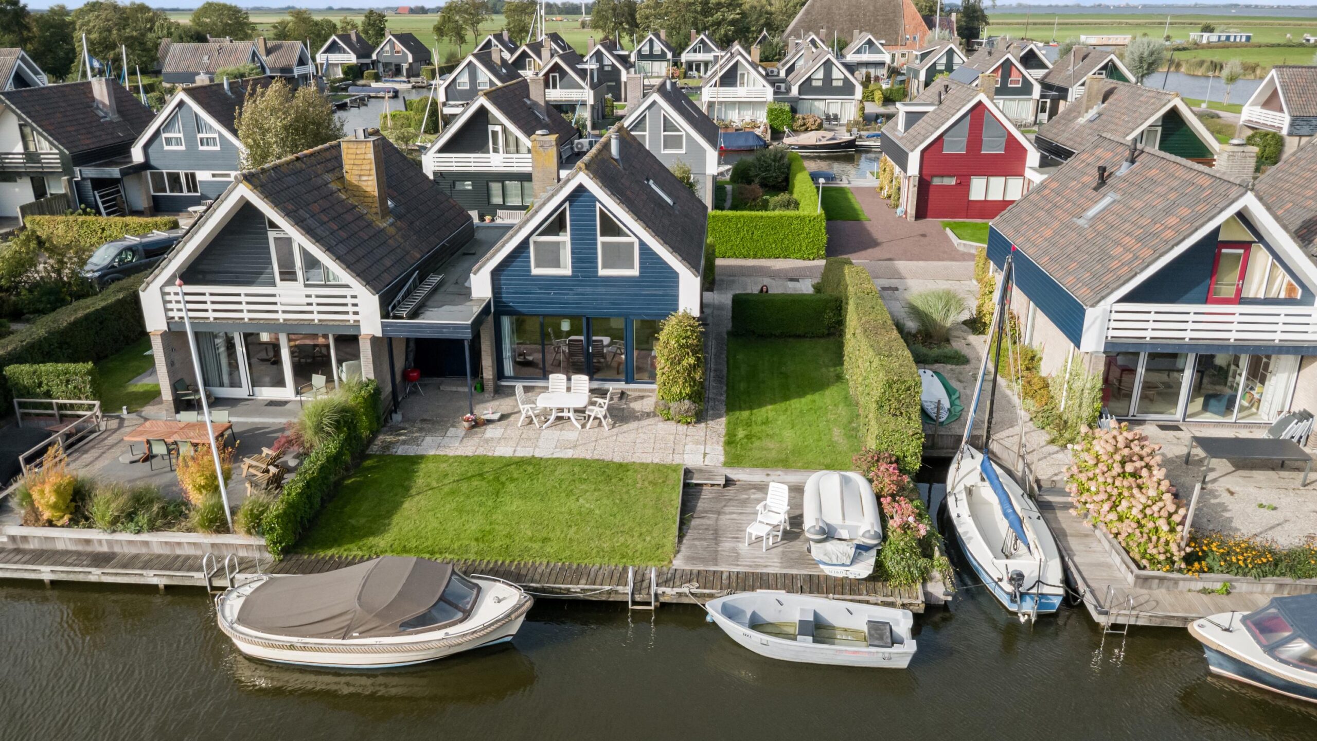 Rondom is een verzorgde tuin met een groot terras, looppad, terras aan de voorzijde, een ruime parkeermogelijkheid op eigen terrein, eigen aanlegplaats van maar liefst 13 meter lengte, gazon, diverse bloeiende borders, buitenverlichting.