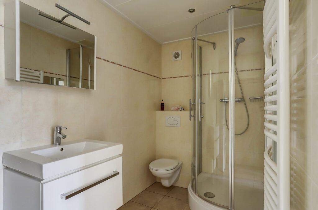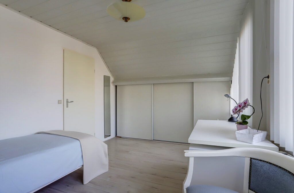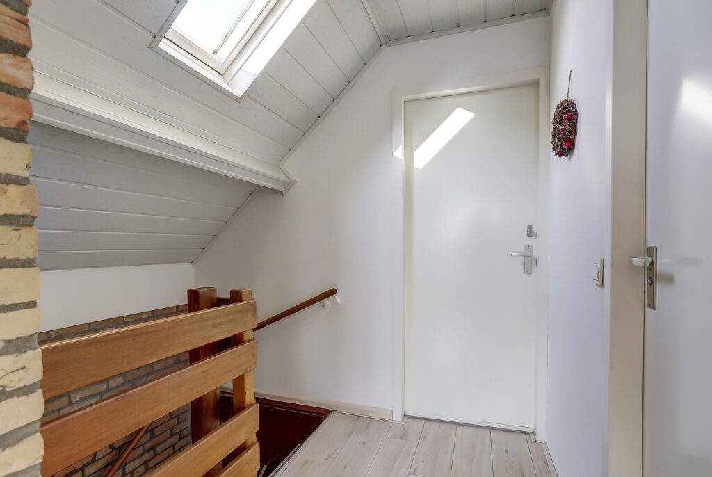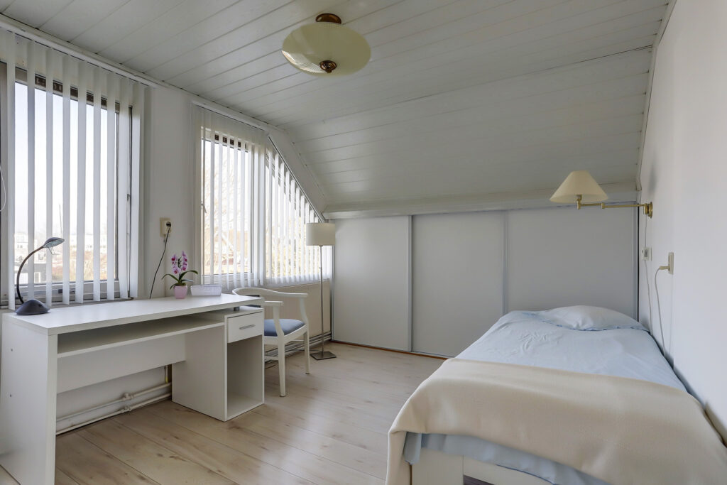 Overloop met dakraam, ruime complete badkamer voorzien van een kunststof dakkapel, douchecabine, vrij hangend toilet en een ligbad. Er zijn twee slaapkamers aanwezig, royale ouderslaapkamer met toegang naar het balkon. Deze slaapkamer is eveneens uitgerust met mobiele airconditioning. Vanuit hier heb je een prachtig uitzicht over doorgaand vaarwater. De slaapkamer aan de voorzijde beschikt over schuifwandkasten en kan eenvoudig gesplitst worden ten behoeve van een extra slaapkamer.