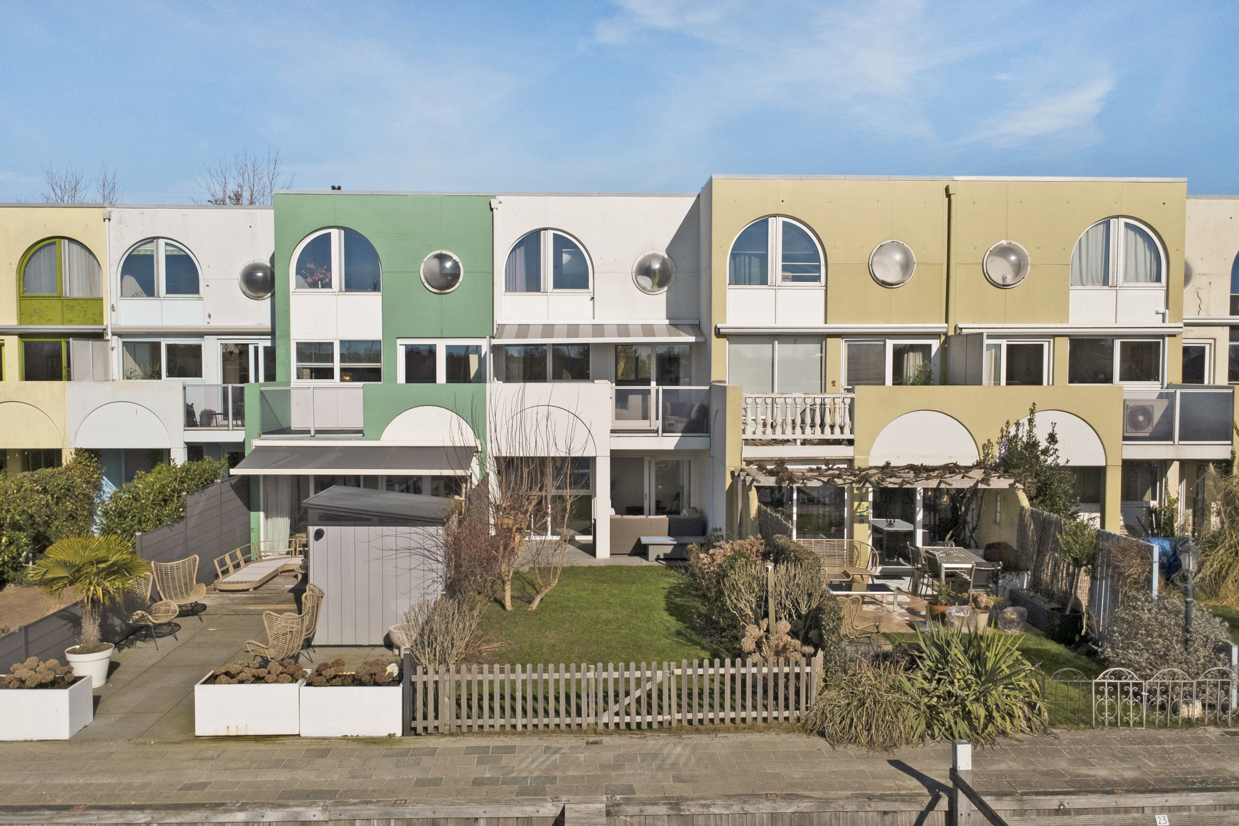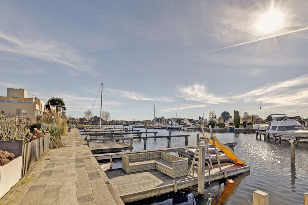 Grenzend aan het achterpad is een eigen grote ligplaats van 10m. lengte x 3,5m. breedte, welke is inbegrepen in de prijs. De voorzijde biedt voldoende parkeergelegenheid voor twee auto's.
