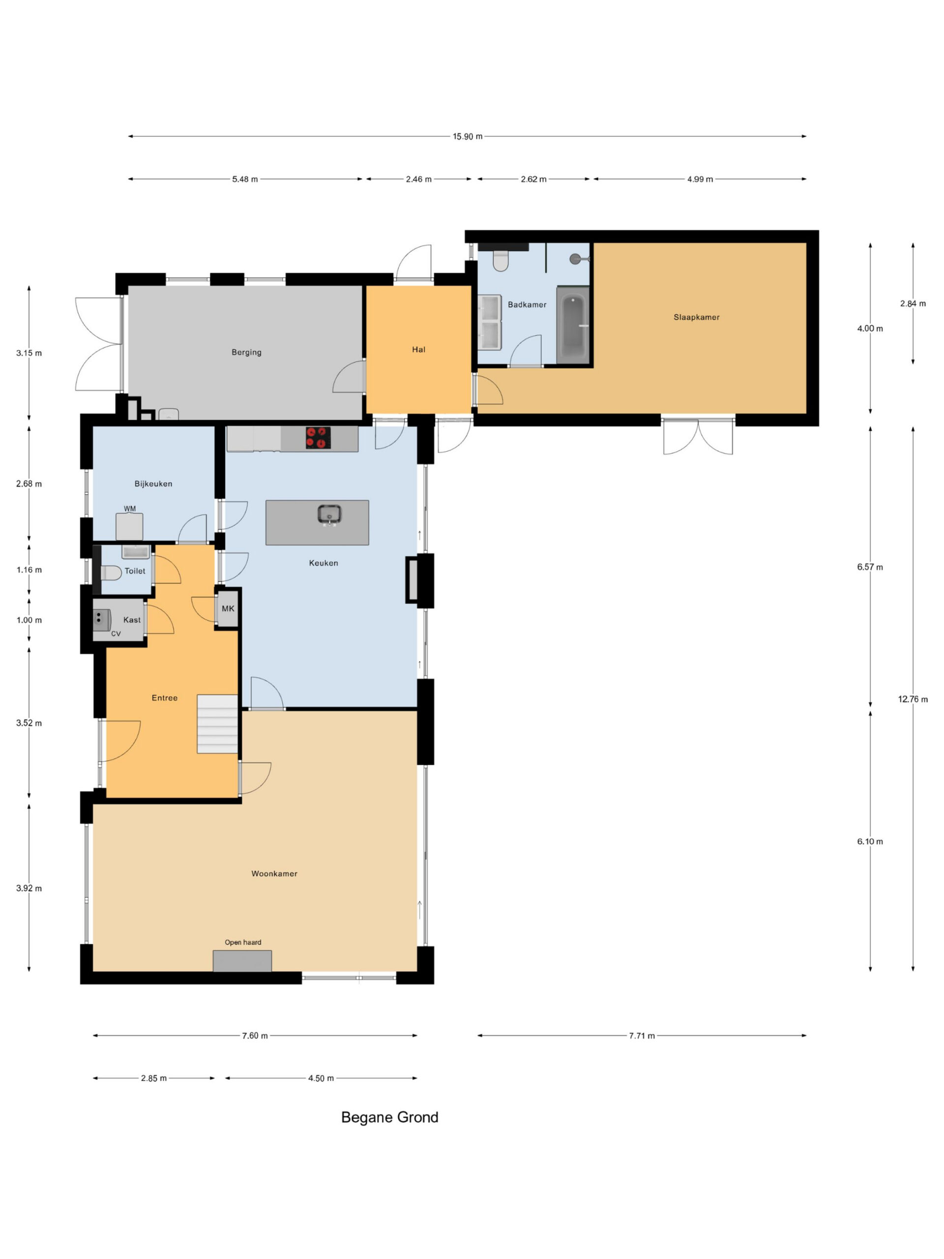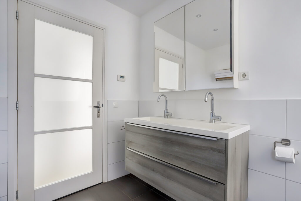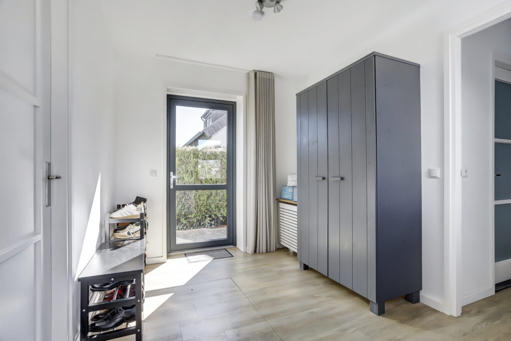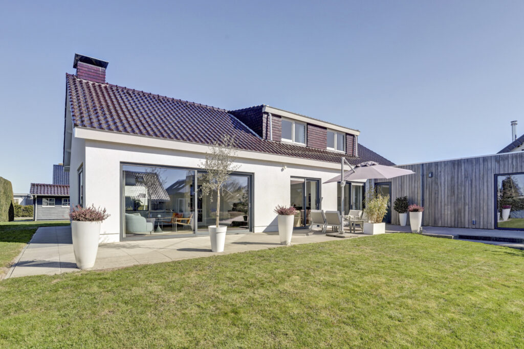 De woning is aan de achterzijde vergroot met een royale aanbouw (8 x 4,5 meter), waarin zich een slaapkamer en een complete badkamer op de begane grond bevinden – ideaal voor gelijkvloers wonen. Aansluitend aan de woonkeuken en de hal is de ruime bijkeuken. Deze ruimte is tevens geschikt als slaap/werkkamer. Vanuit de andere zijde van de woonkeuken is een riante tussenhal met een bereikbare droge kelder en een zijentree. Vanuit deze tussenhal is de inpandige garage bereikbaar. De verdieping beschikt over 3 slaapkamers, waarvan een ruime slaapkamer met open kap en een tweede badkamer.