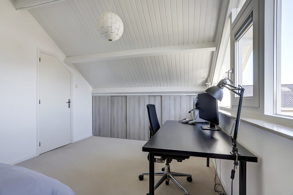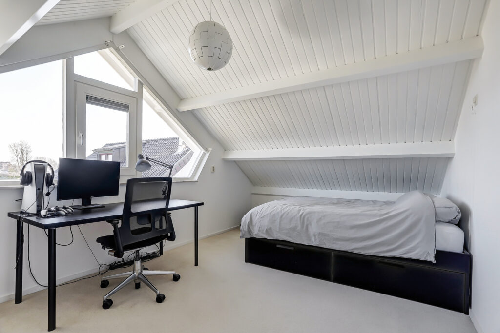 Op de verdieping zijn drie slaapkamers aanwezig, waarvan twee slaapkamers zijn uitgerust met een dakkapel en een slaapkamer met open kap en zijramen. Overloop met dakkapel aan de voorzijde en een tweede badkamer met douche, toilet en wastafelmeubel.
