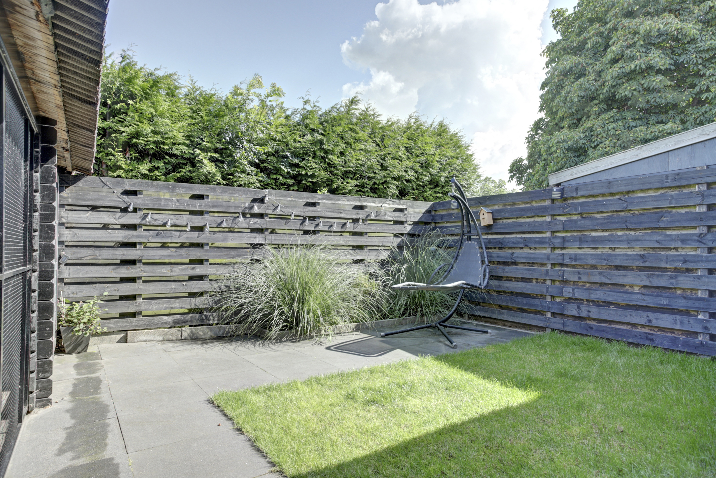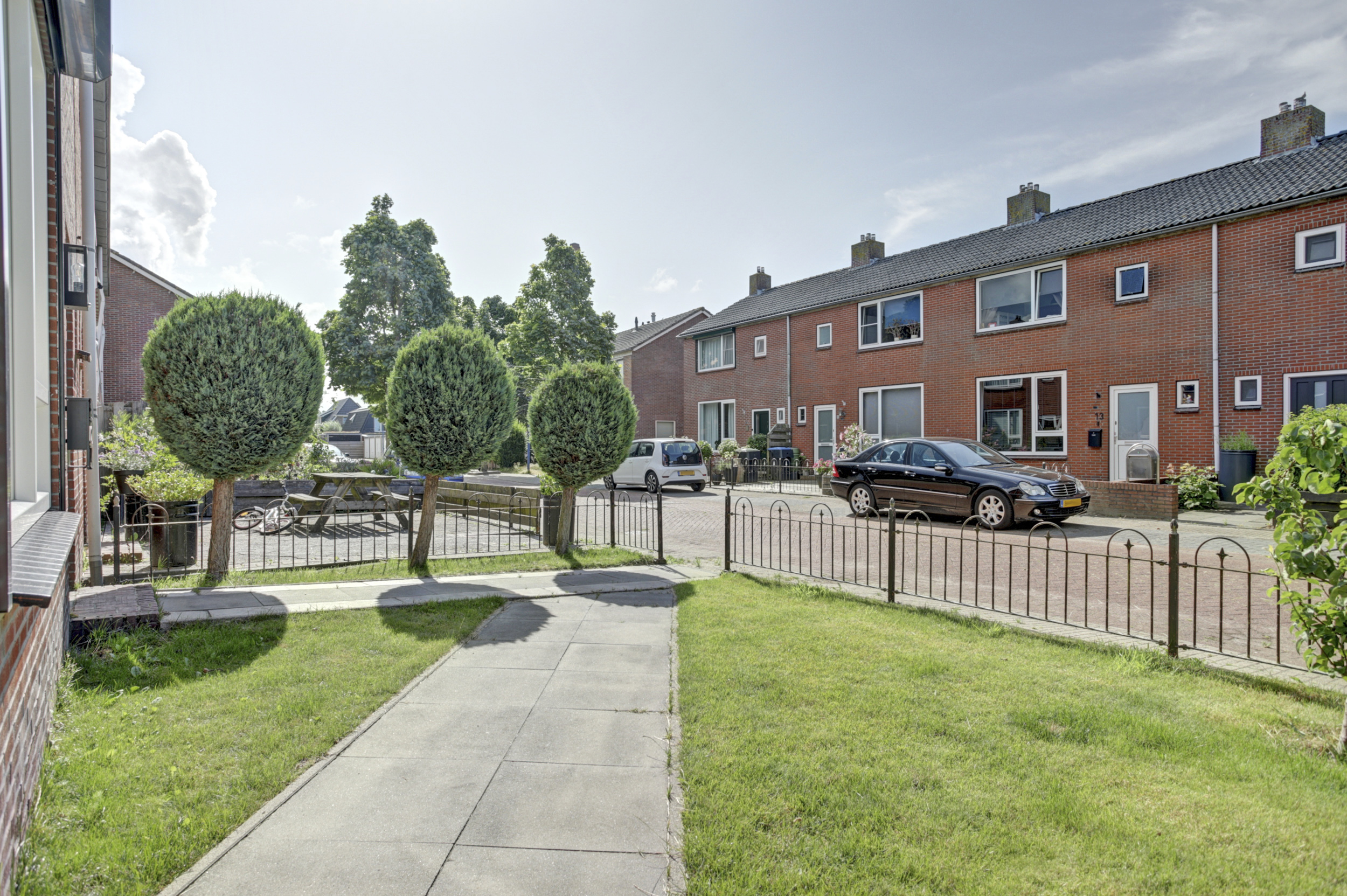 Verzorgde tuin met bestrating, zijpad, berging en diverse bloeiende borders, gazon in de voortuin. In de directe omgeving en voor de woning is er voldoende parkeergelegenheid.