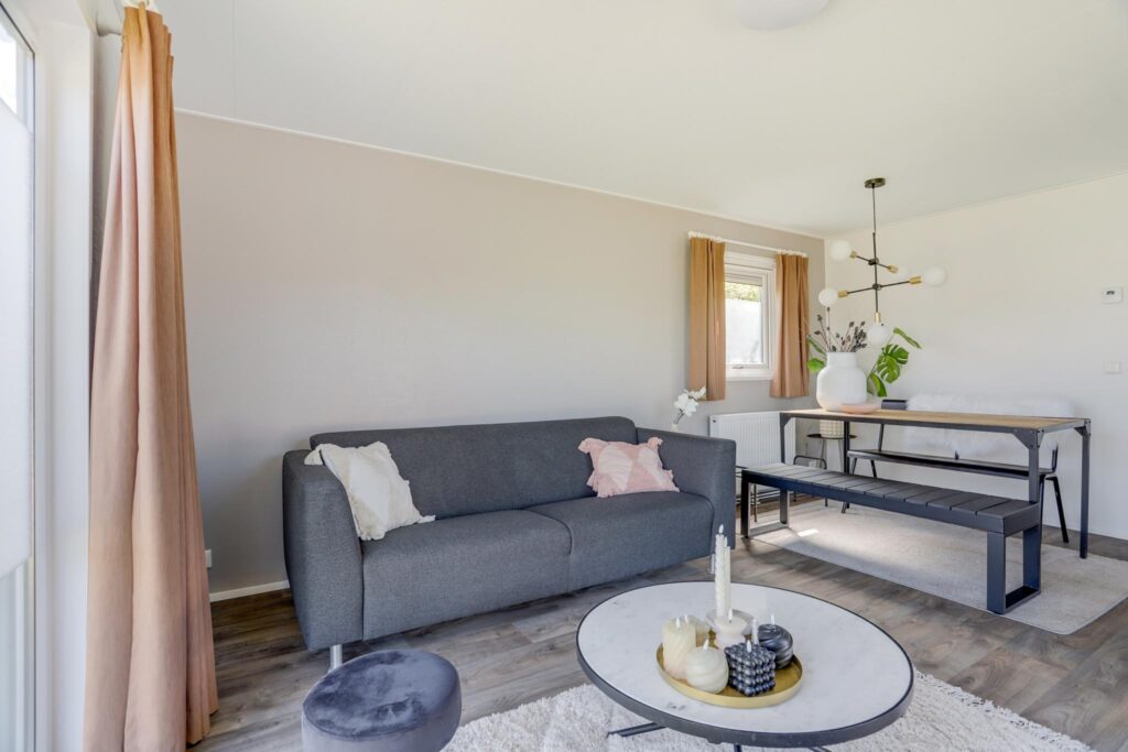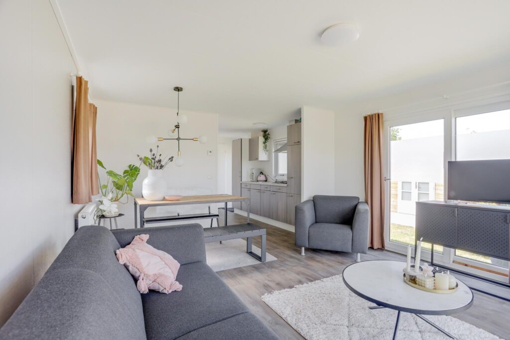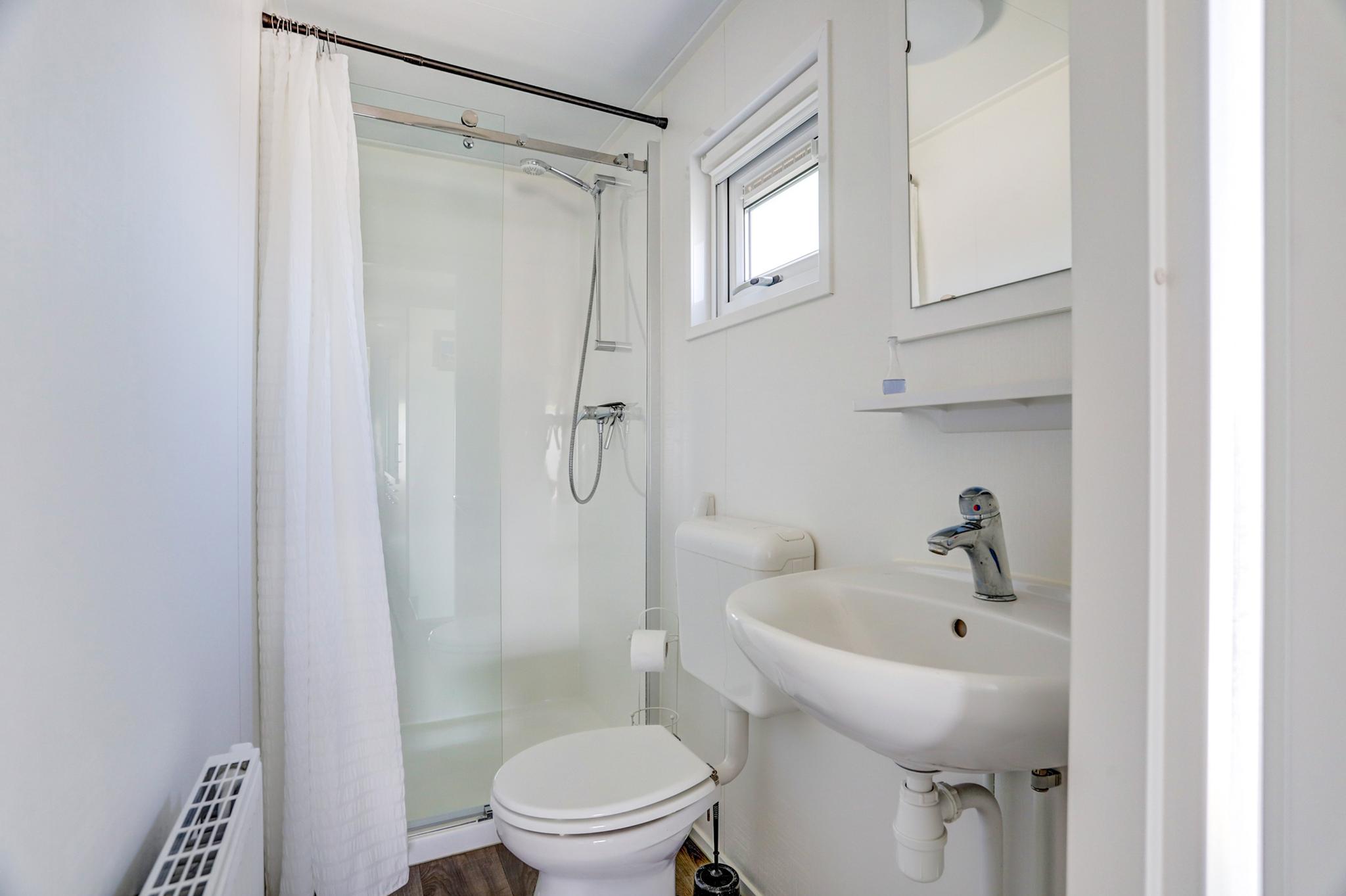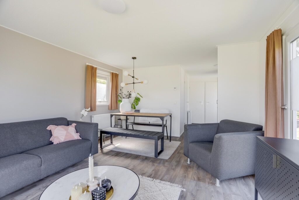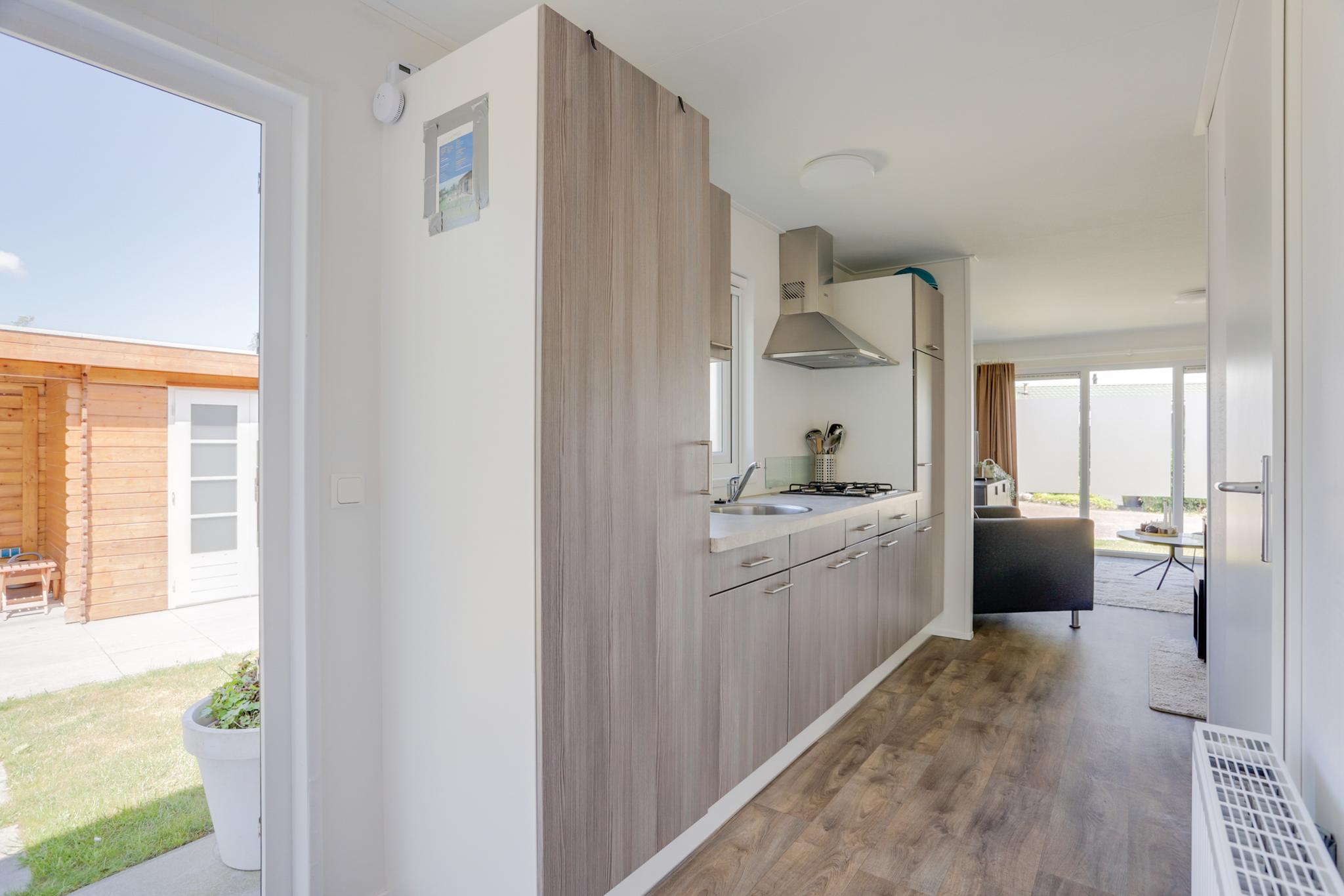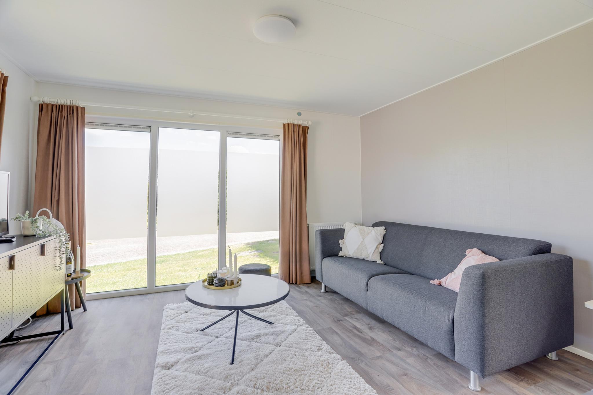 Royale lichte living voorzien van een kunststof schuifpui naar het terras, fraaie eet/zithoek, moderne keuken met voldoende kastruimte inclusief inbouwapparatuur, waaronder; koel/vriescombinatie, gaskookplaat, afzuigkap, magnetron. Twee slaapkamers waarvan een ouderslaapkamer voorzien van vaste kasten en een slaapkamer met twee bedden en kastruimte. De badkamer is uitgerust met een douche, toilet en wastafel. Naar wens kan het gehele inventaris achterblijven, behoudens enkele persoonlijke bezittingen.