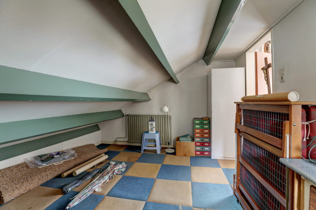 Vanuit de garage is middels een vaste trap de grote zolderkamer met dakkapel bereikbaar. Deze ruimte leent zich goed als werk/hobbyruimte of atelier en kan ook geschikt worden gemaakt als slaapkamer en is voorzien van een keukenblokje en een aparte berging.