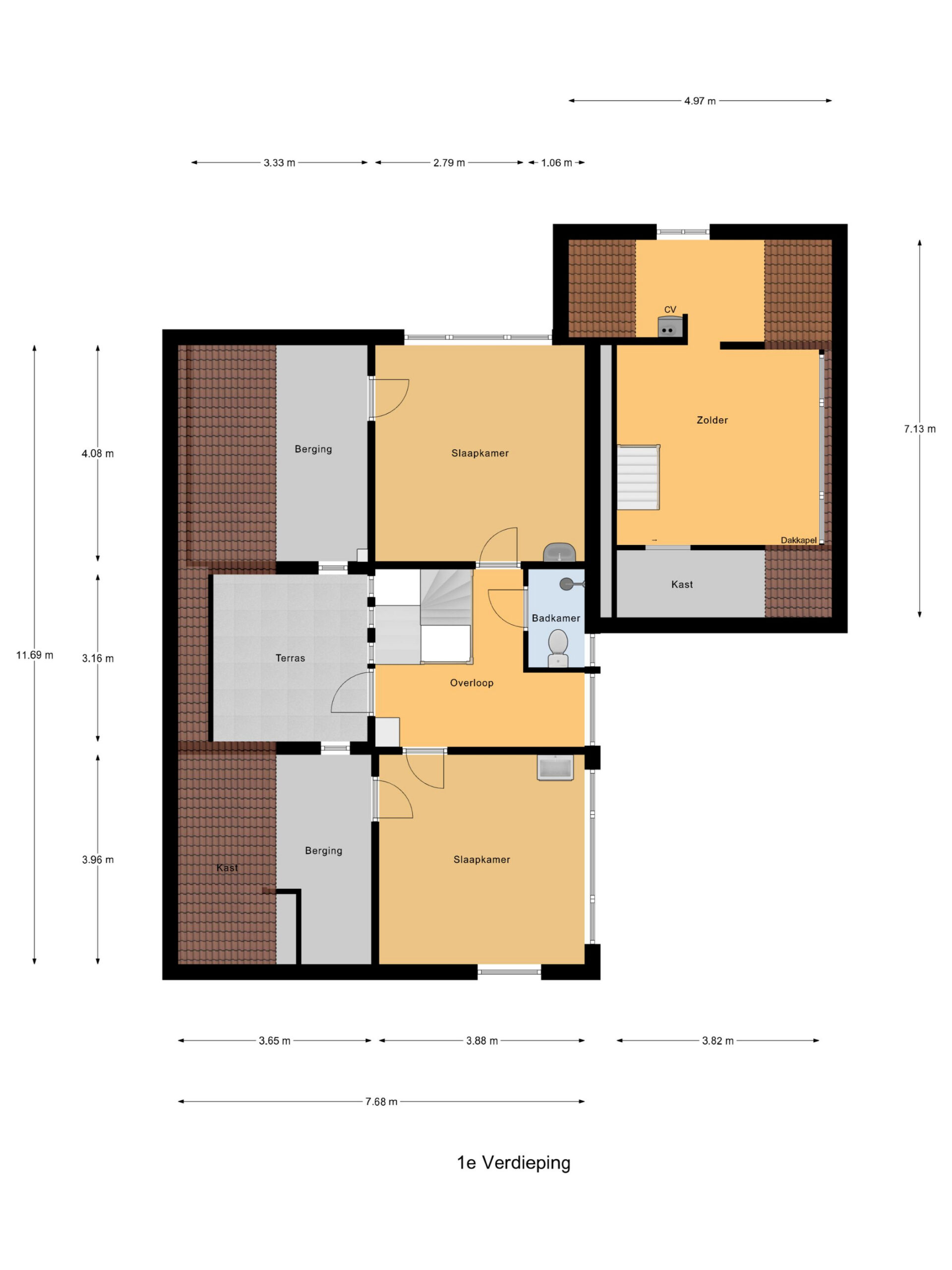 Er zijn twee royale slaapkamers die uitgevoerd zijn met een wastafel en rechte wanden. Elke kamer heeft toegang naar een ruime berging. Er zijn goede mogelijkheden voor het realiseren van extra (slaap)kamers.