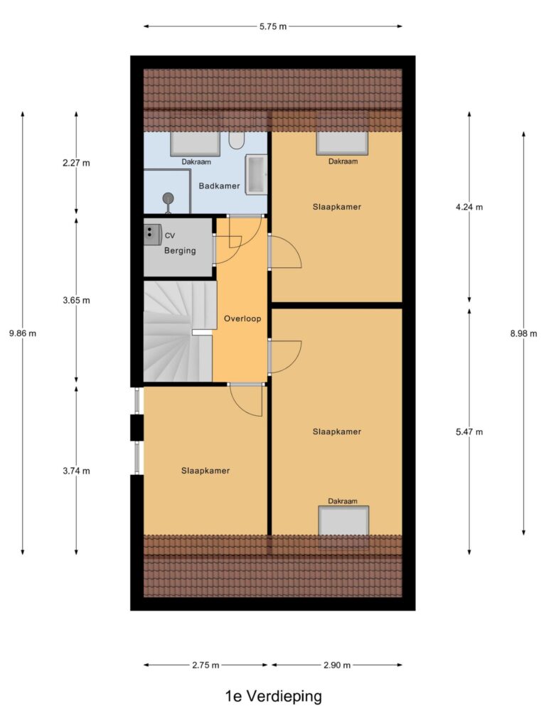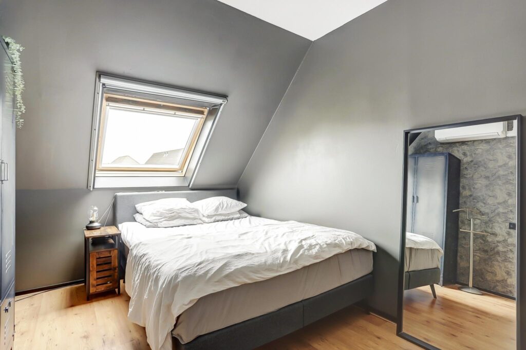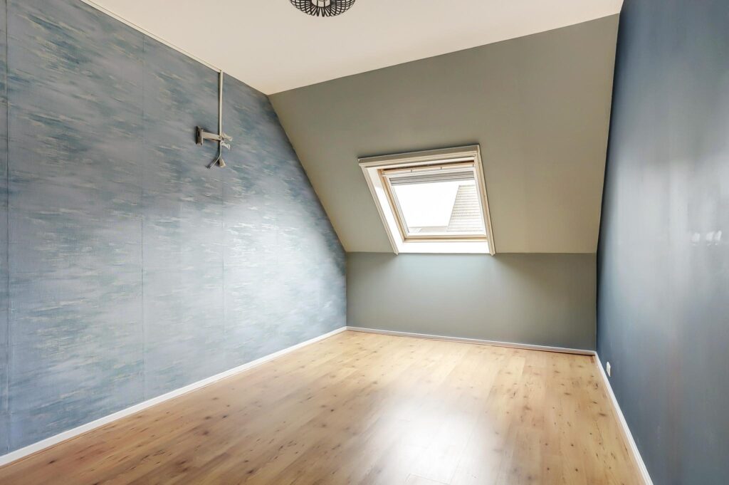 Vaste trap naar de zolder met een zijraam en een 4e ruime slaapkamer en een dakraam.