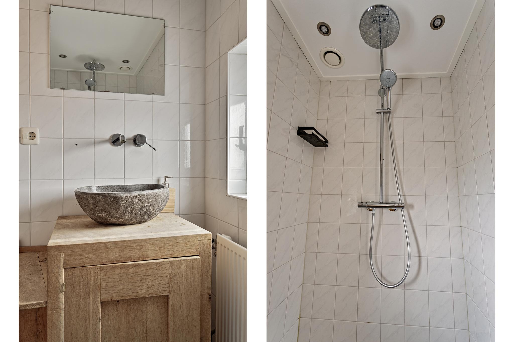 Overloop, 3 slaapkamers, waarvan een ruime ouder slaapkamer, badkamer met wastafelmeubel en inloopdouche.