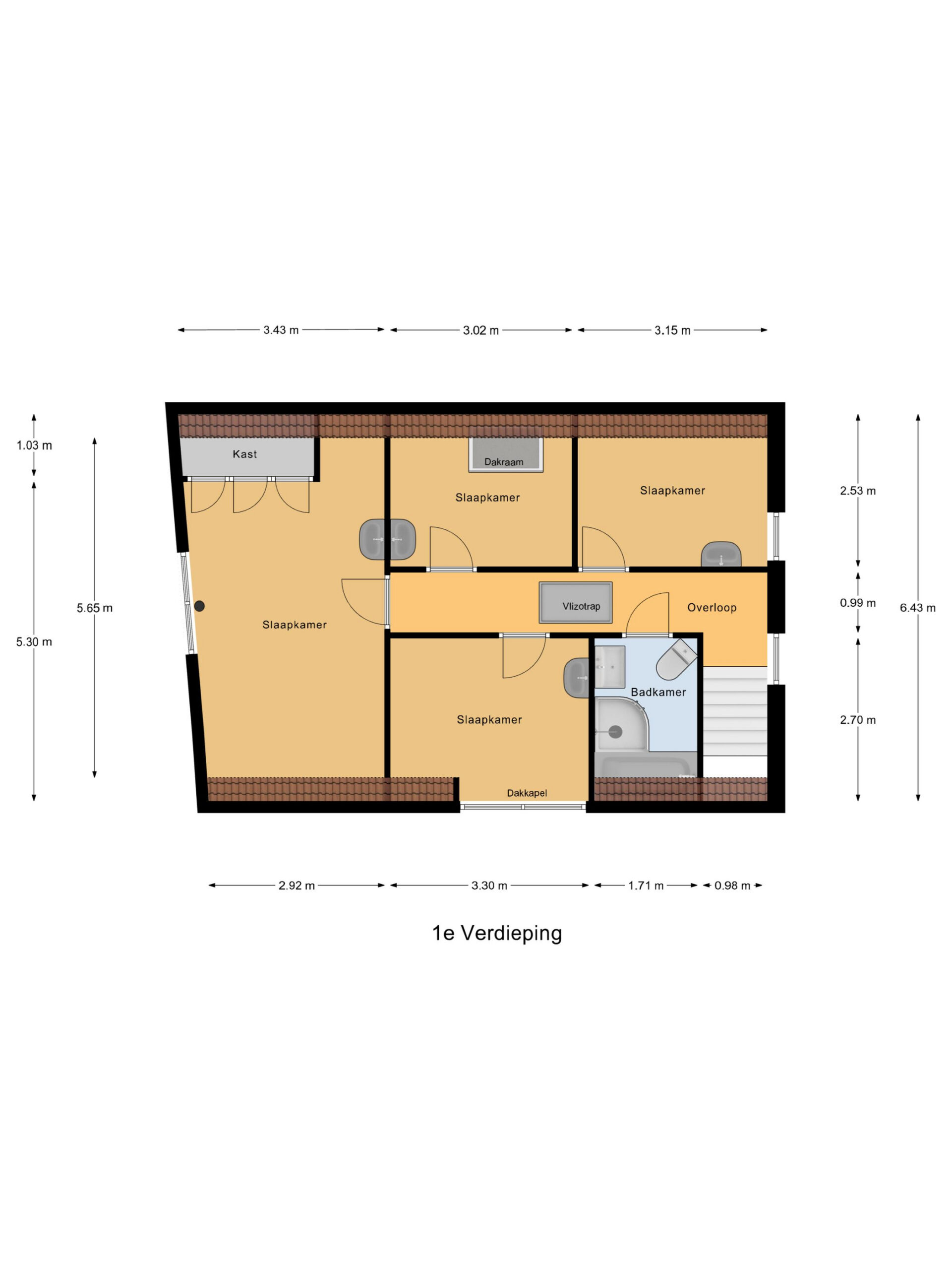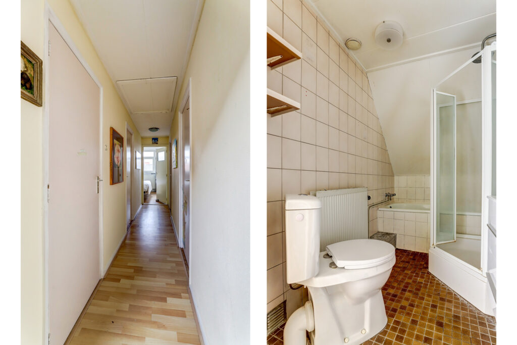 Overloop met zijraam, badkamer met toilet, ligbad, douche en wastafelmeubel, 4 slaapkamers, waarvan een ruime ouderslaapkamer, slaapkamer met een kunststof dakkapel. Alle 4 slaapkamers beschikken over een eigen wastafel.