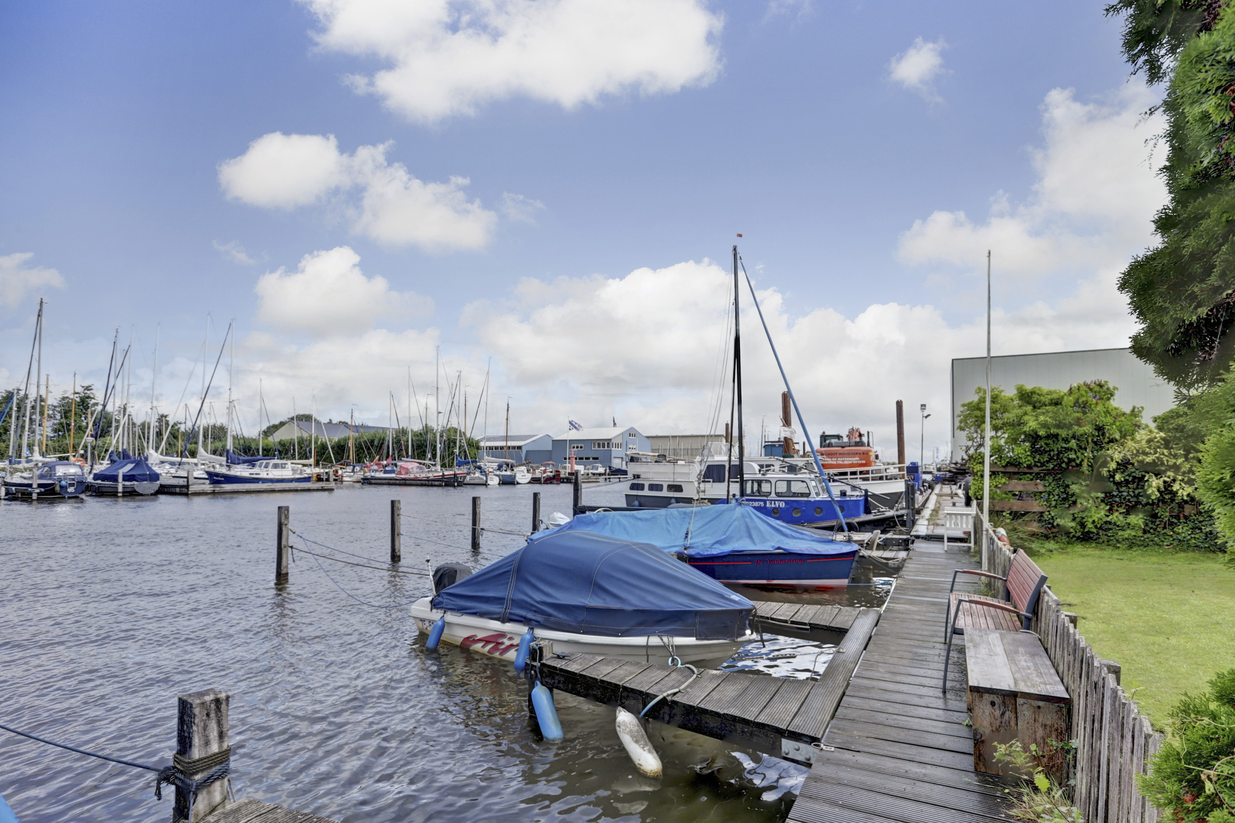 Zonnige tuin met bestrating, terrassen (voor-, en achtertuin), diverse bloeiende borders en struiken. Eigen ligplaats met elektra, aan doorgaand vaarwater. Vanuit hier zijn alle Friese Meren goed bereikbaar.
