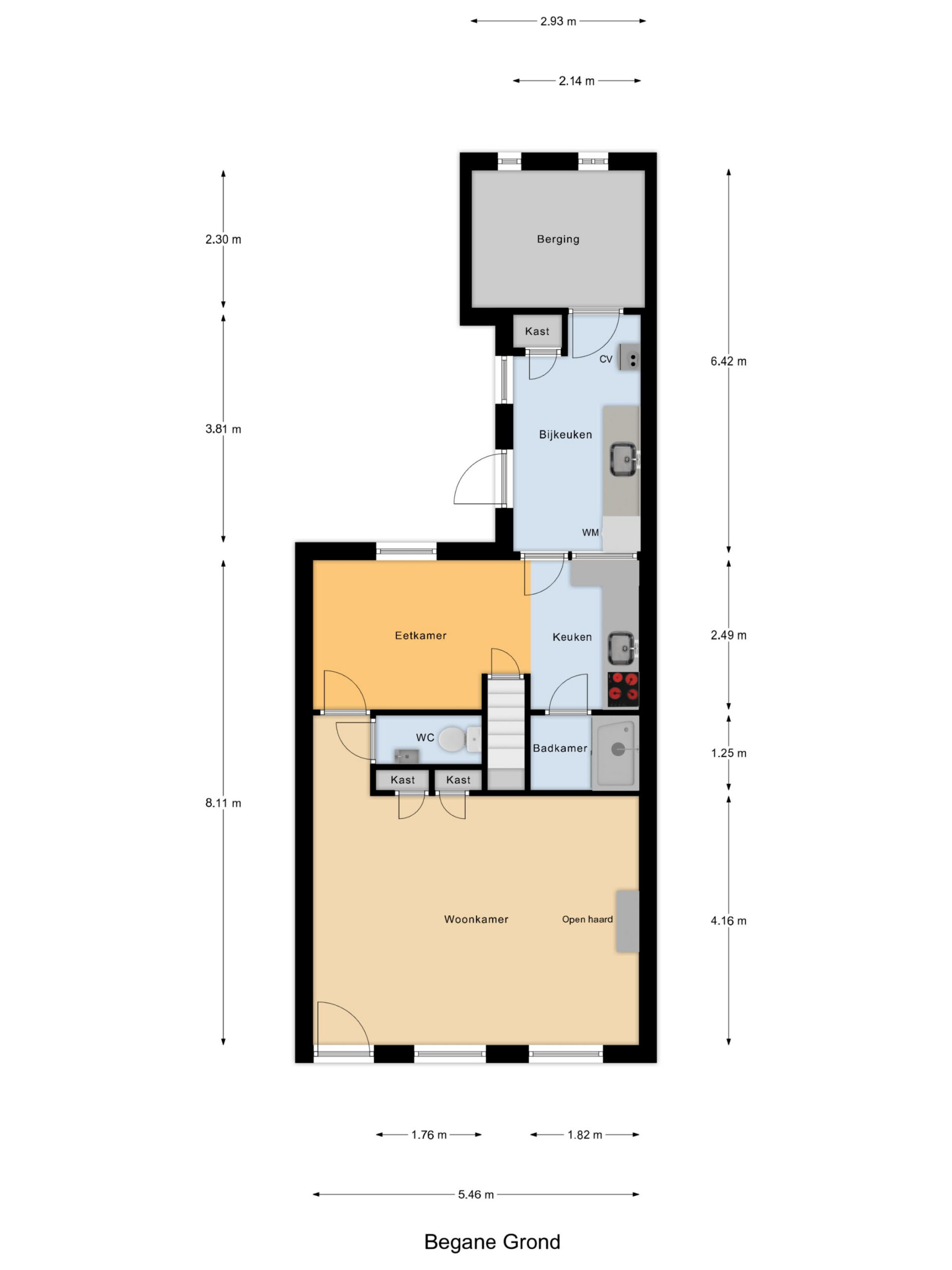 De begane grond is als volgt ingedeeld; entree, sfeervolle woonkamer met veel lichtinval, vaste kasten, houtkachel, een apart eet/zitgedeelte met halfopen keuken inclusief apparatuur, toiletruimte met fonteintje, doucheruimte met wastafelmeubel. Aansluitend is een bijkeuken met aansluitpunten ten behoeve van witgoedapparatuur, verwarming, tuindeur naar het terras en een doorgang naar de berging. Op de verdieping zijn 3 slaapkamers aanwezig voorzien van dakkapellen, kastruimte, tweede badkamer met toilet en wastafel.